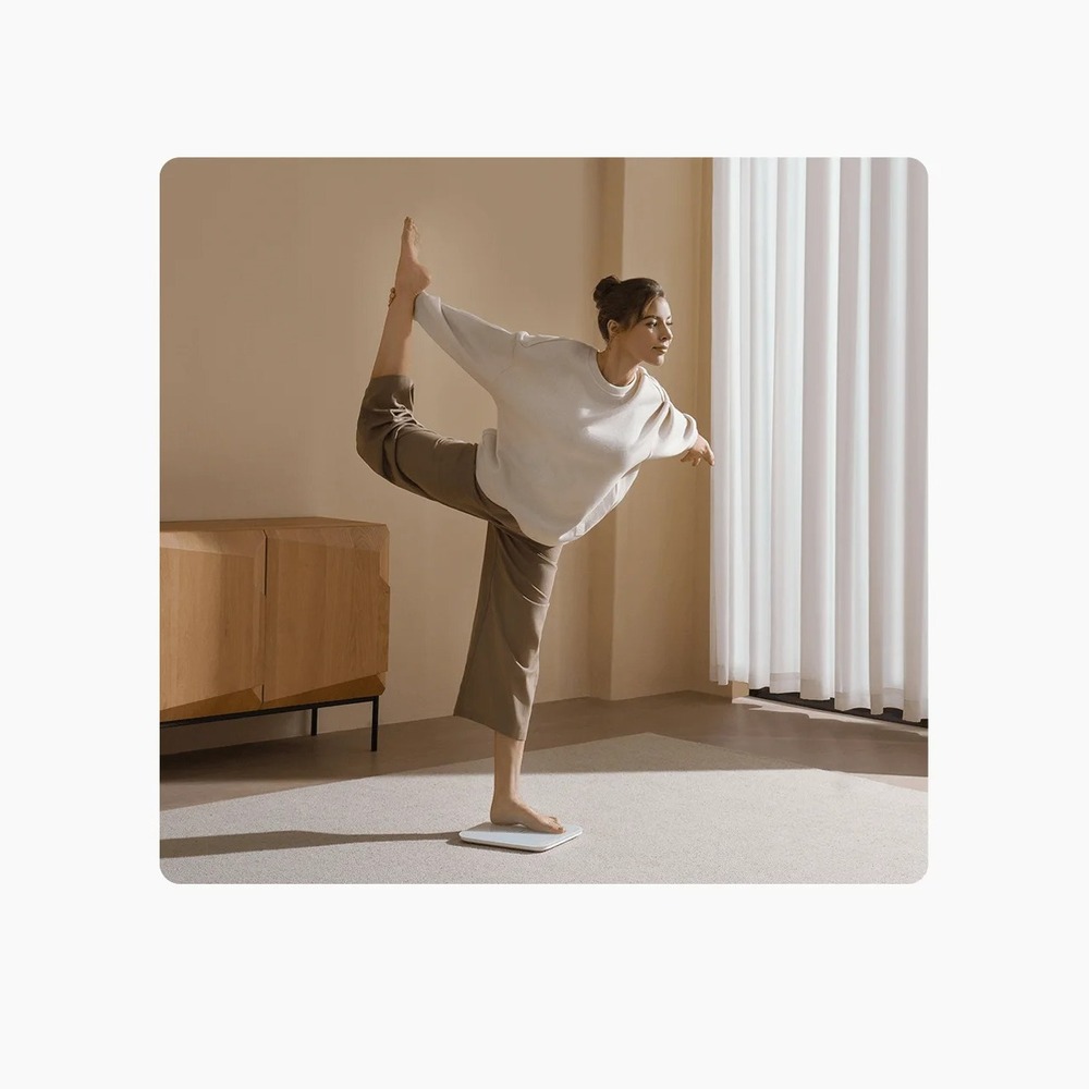 Функция тестирования баланса позволяет оценить вашу устойчивость и координацию. Для этого нужно стать на весы на одну ногу - результаты можно просмотреть в приложении Xiaomi Home, что поможет улучшить баланс и реакцию тела.