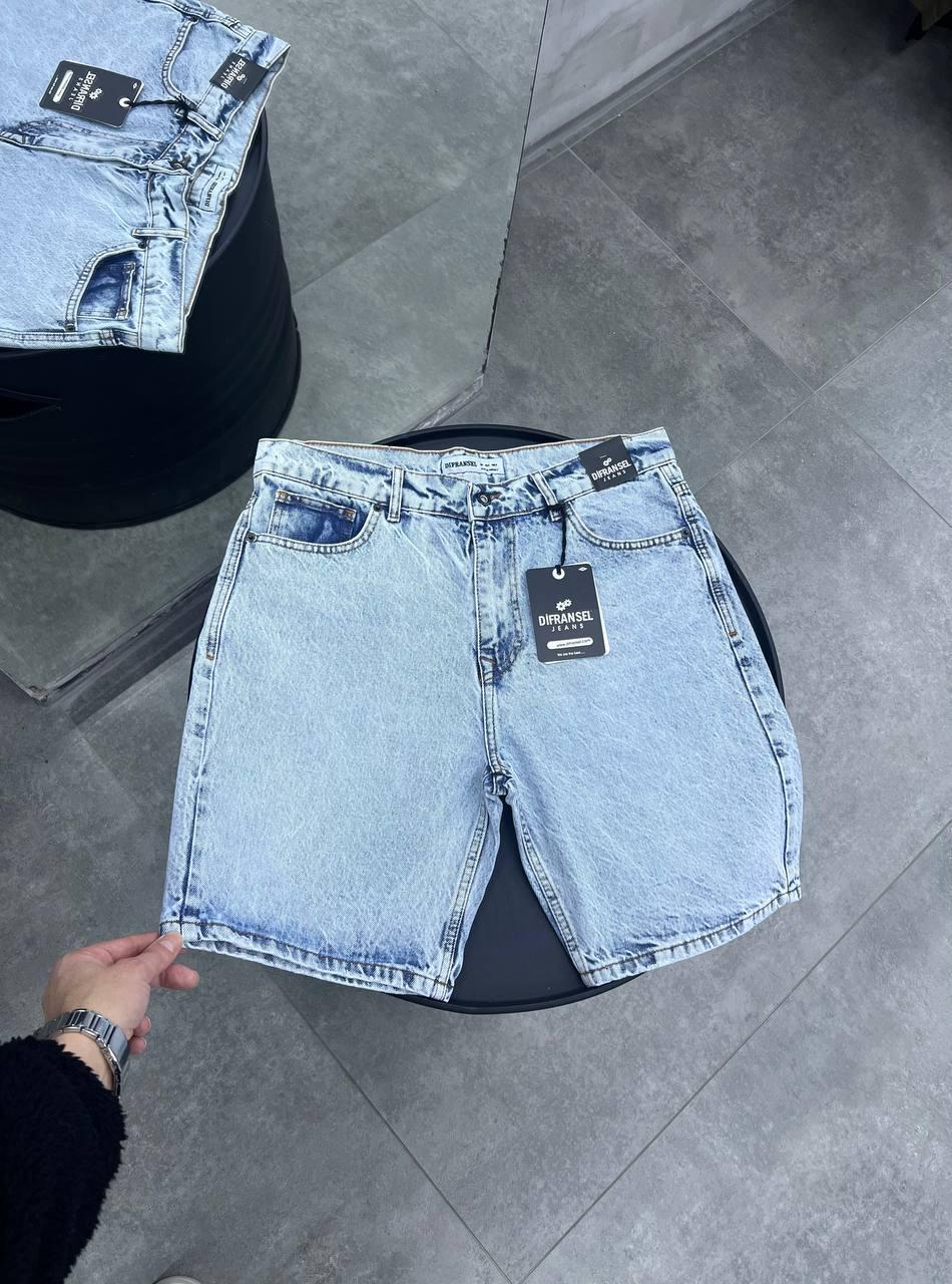 Джинсовые МОМ шорты мужские голубые однотонные летние базовые Ador Джинсові МОМ шорти чоловічі блакитні однотонні літні базові
