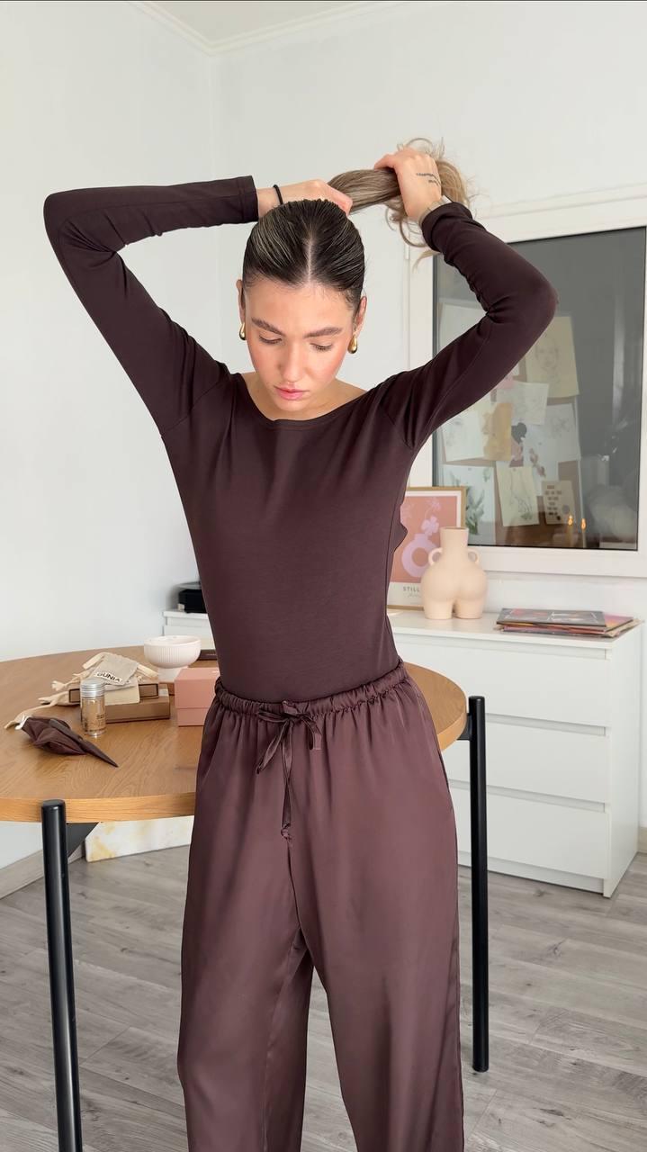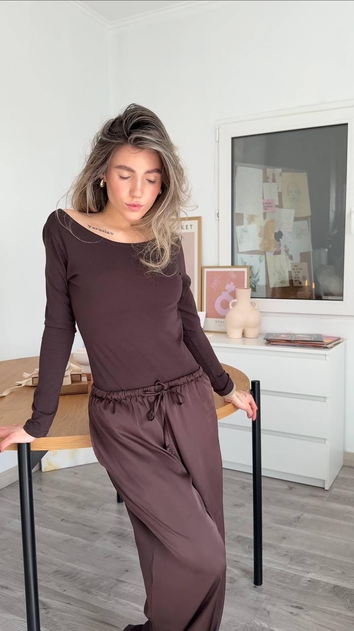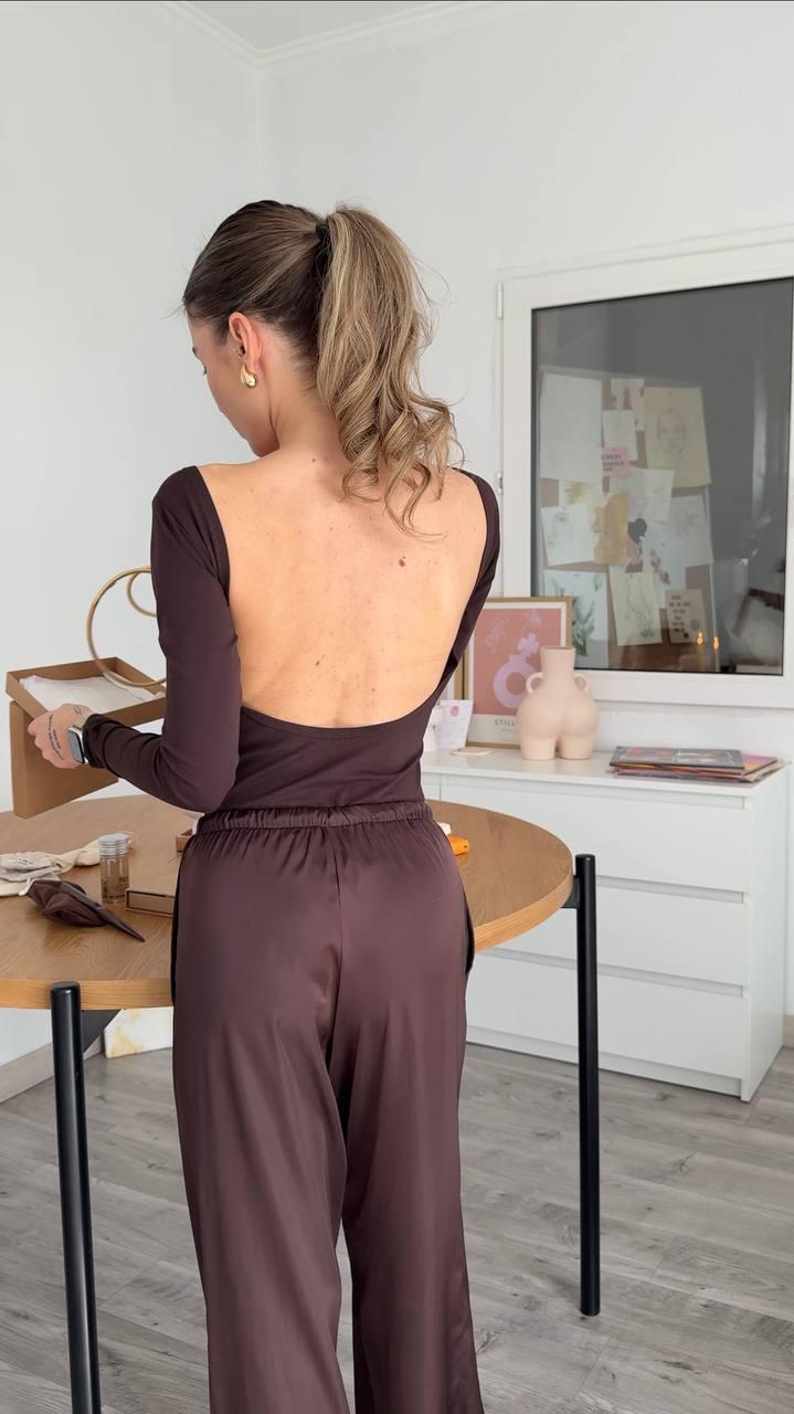 Боди с открытой спинкой коричневое женское однотонное базовое