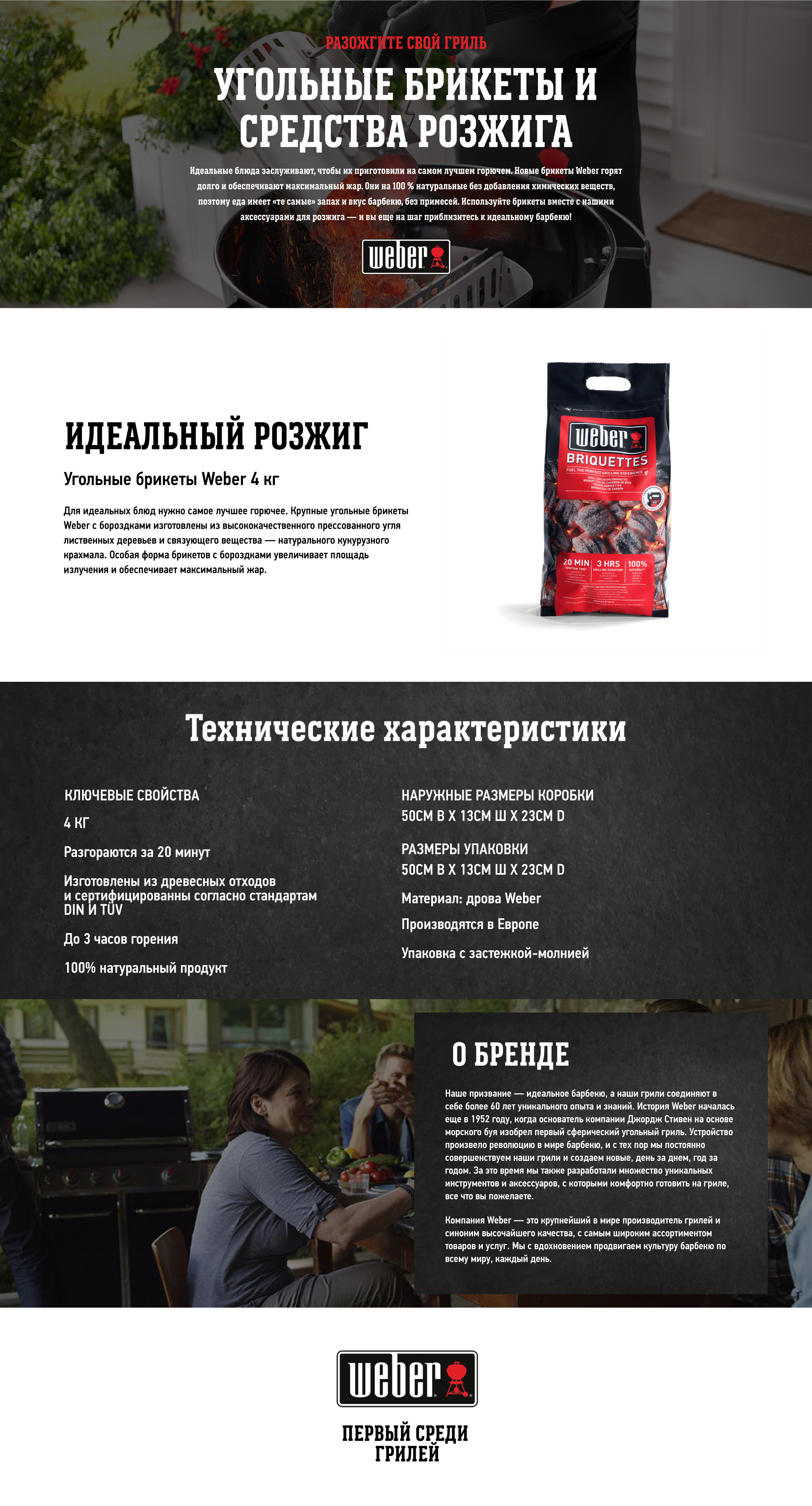Как и все продукты Weber, эти брикеты разработаны с учетом высочайших стандартов качества и функциональности, гарантируя надежность и эффективность горения.