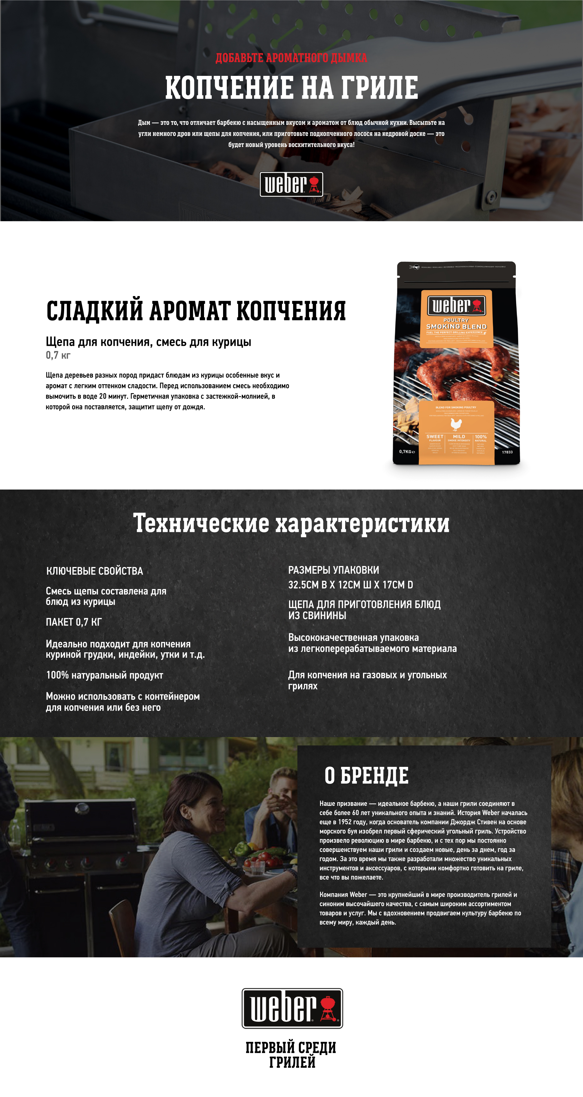 Как и все продукты Weber, эта щепа произведена с учетом высочайших стандартов качества, гарантируя чистое горение и безопасность для пищевых продуктов.
