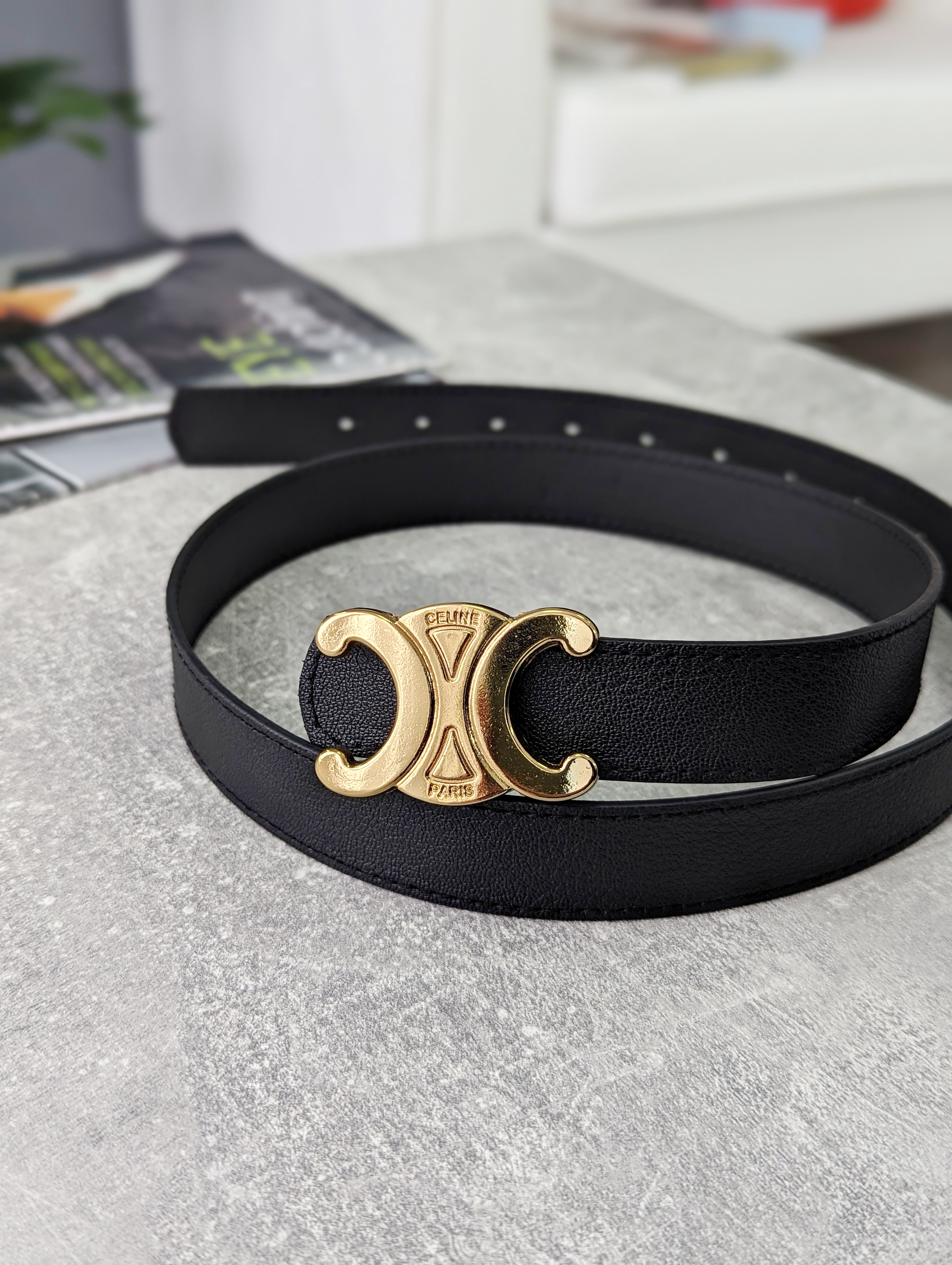 | Ремень женский Celine spring черный брендовый кожаный пояс с логотипом селин |