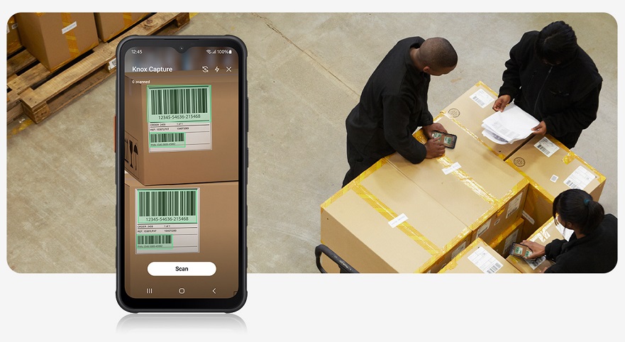 Galaxy XCover7 може легко стати сканером штрих-кодів корпоративного рівня завдяки Knox Capture. Просто скануйте штрих-коди камерою і отримані дані автоматично інтегруються у ваші бізнес-застосунки.