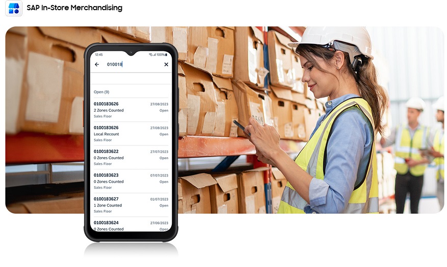 Незалежно від того, чи це менеджер магазину, чи продавець, SAP-застосунки з мерчендайзингу в магазинах дозволяють співробітникам ефективніше виконувати базові задачі за допомогою оптимізованих функцій Galaxy XCover7.