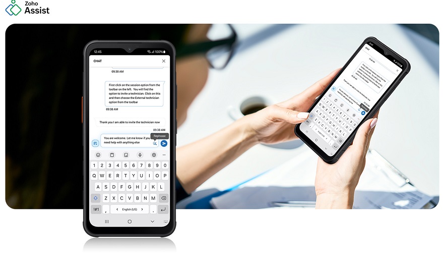 Отримайте якісну віддалену підтримку для вашого мобільного пристрою безпосередньо від технічного спеціаліста. Zoho Assist додасть розширені функції, як-от генерація відповідей за допомогою штучного інтелекту.