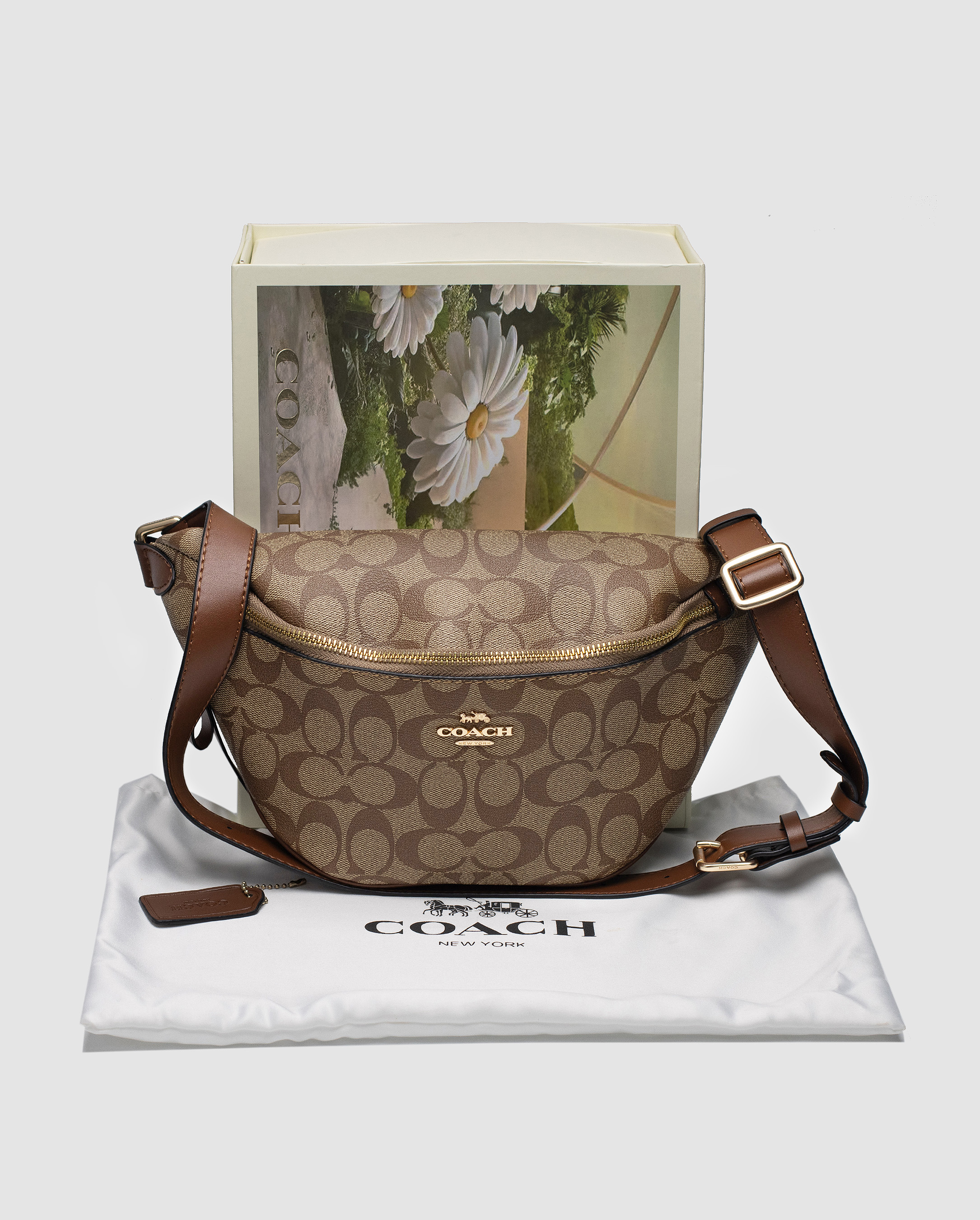 | Женская сумка коуч фирменная классическая унисекс поясная поясно светло-коричневый кожаная Coach |