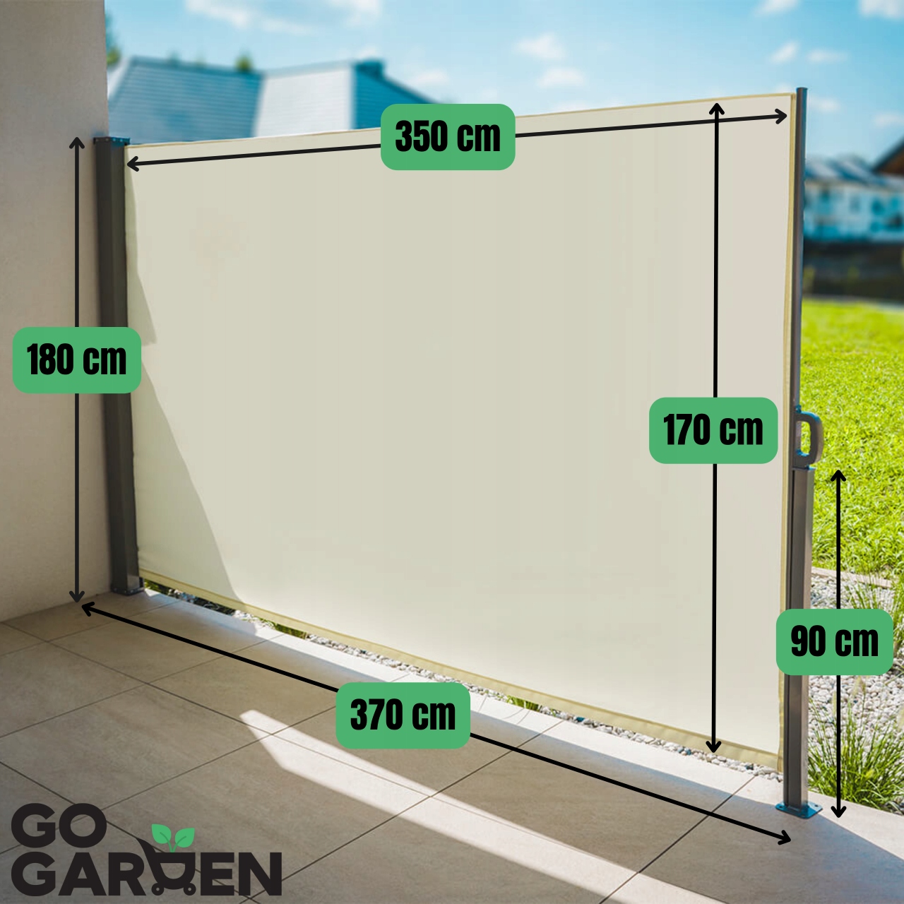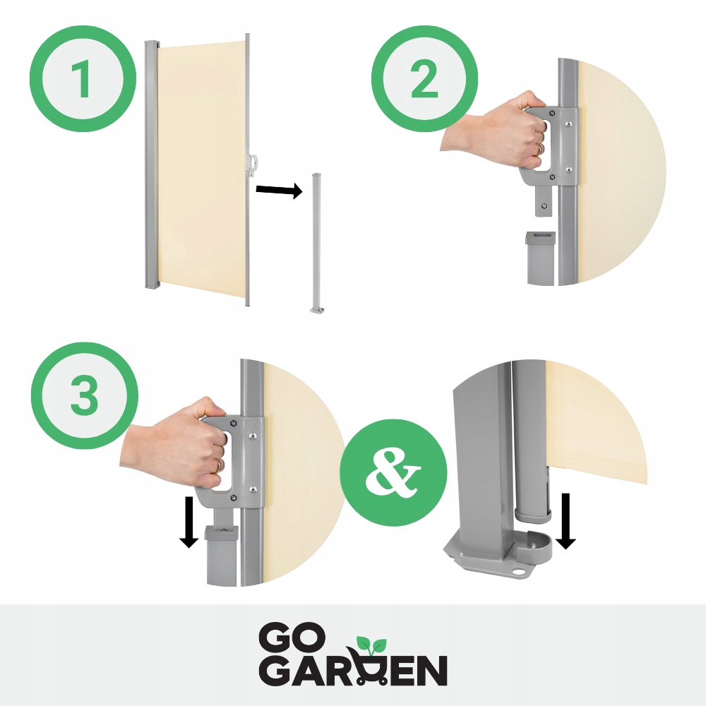 Незалежно від того, чи хочете ви насолоджуватися яскравими променями сонця, потягуючи ранкову каву, чи потребуєте легкої тіні під час післяобіднього відпочинку, регульована довжина тенту дозволить вам зручно налаштувати його відповідно до ваших потреб. Просто відрегулюйте кронштейн на потрібну відстань – максимальна довжина становить 350 см.