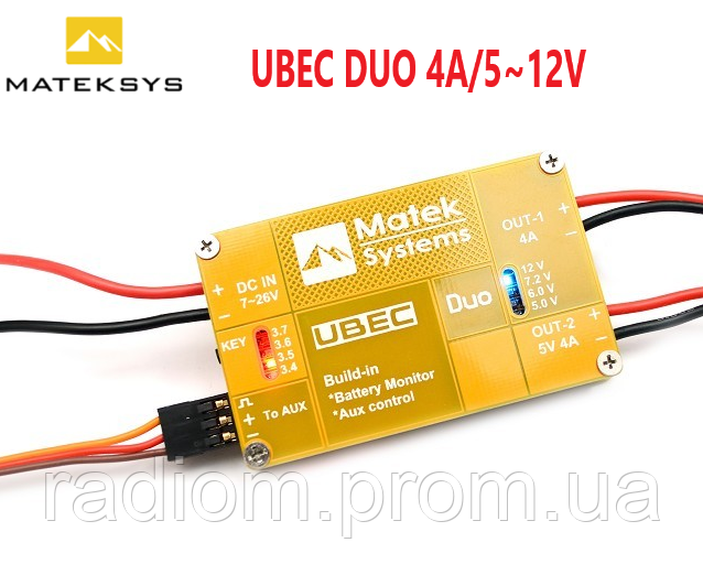 Matek UBEC DUO 4A/5~12V - это мощный и компактный стабилизатор напряжения, предназначенный для бесперебойного питания различных компонентов в моделях дронов, самолётах и другой RC-технике