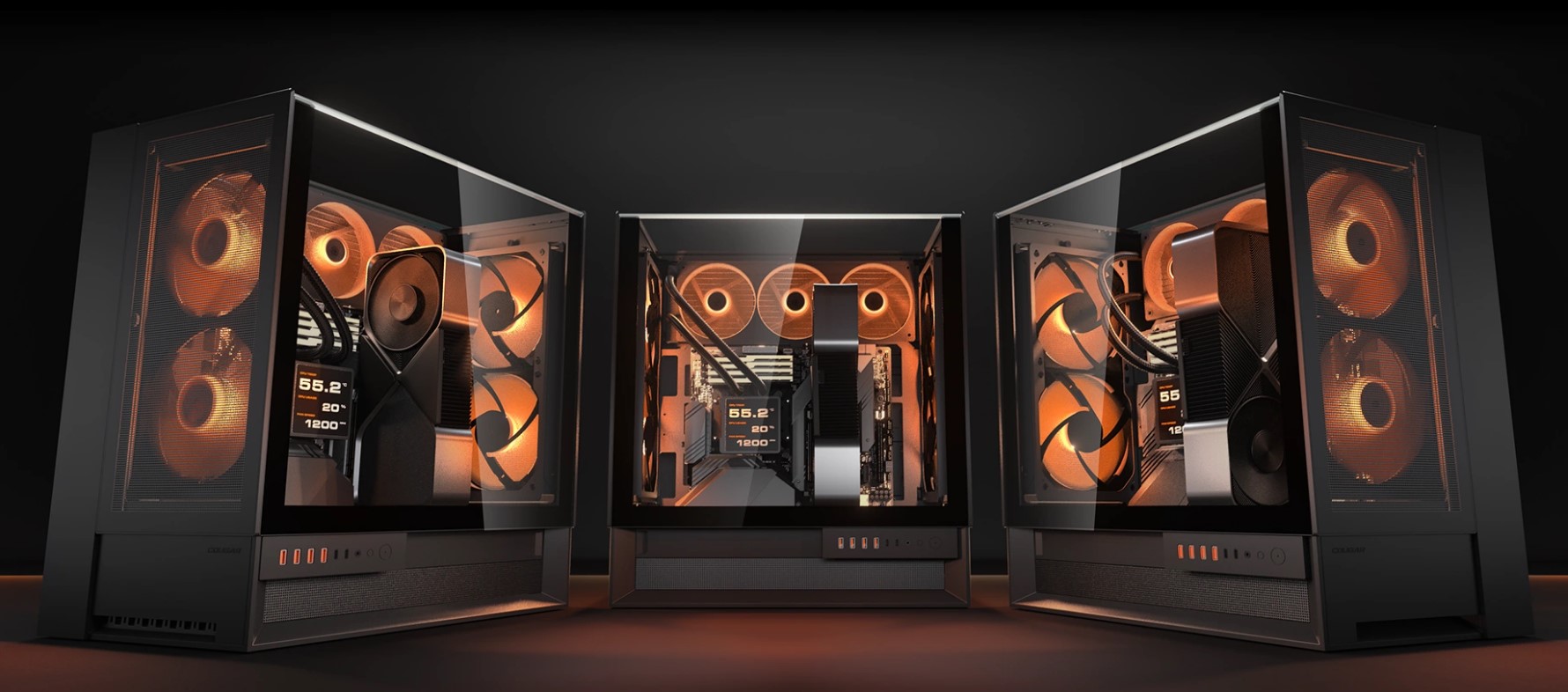 Идеально симметричный дизайн обеспечивает полную свободу ориентации. Благодаря двойным прозрачным стеклянным панелям, позволяющим продемонстрировать вашу сборку с любого угла, OmnyX выглядит потрясающе, независимо от того, расположен он справа, слева или по центру.