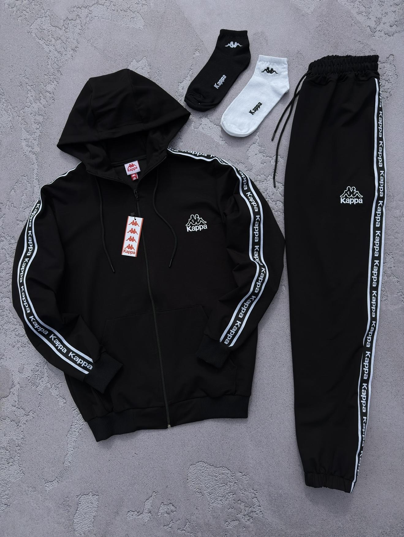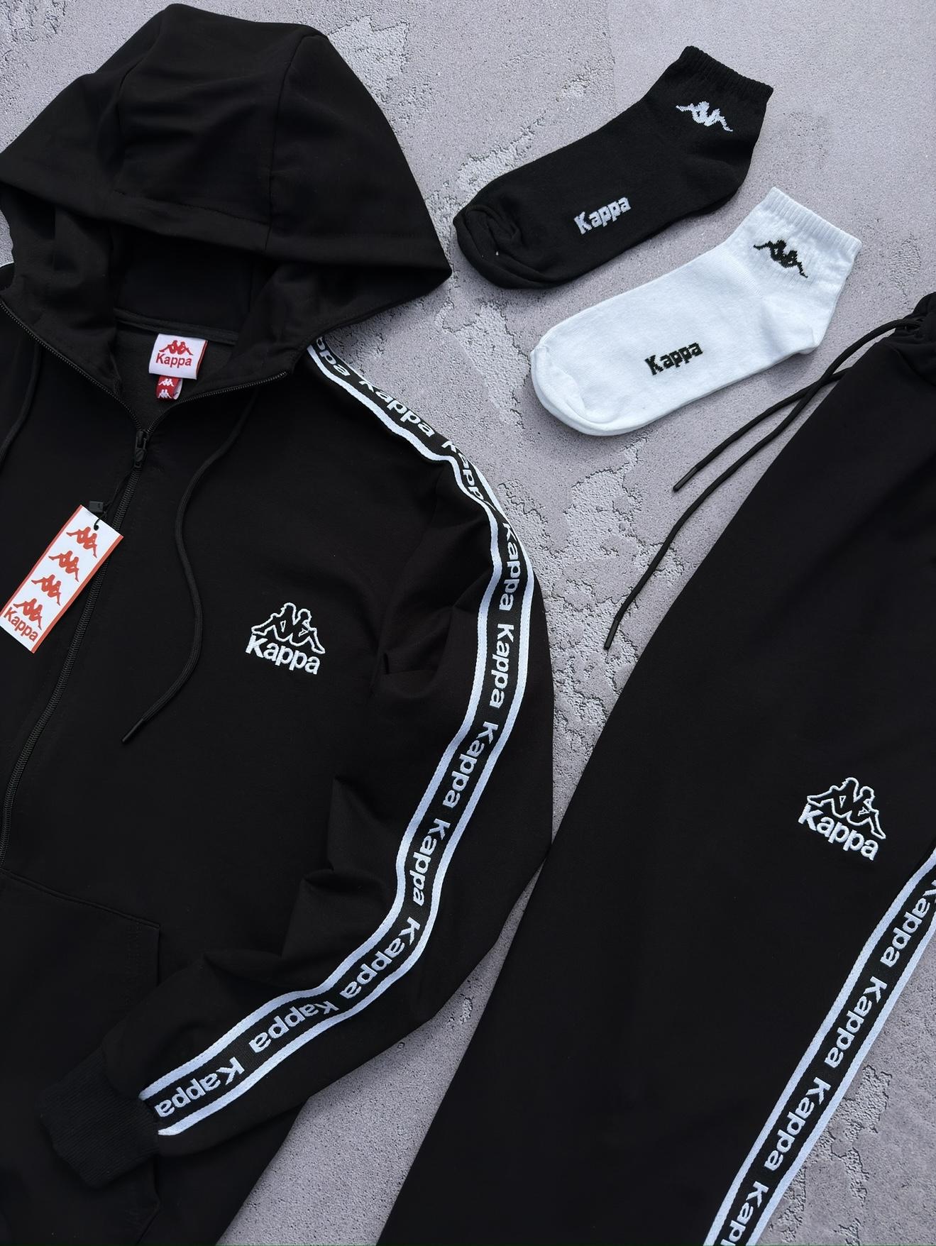 Костюм Kappa черный худи штаны с логотипом 2 пары носок в подарок унисекс весна лето осень BZN