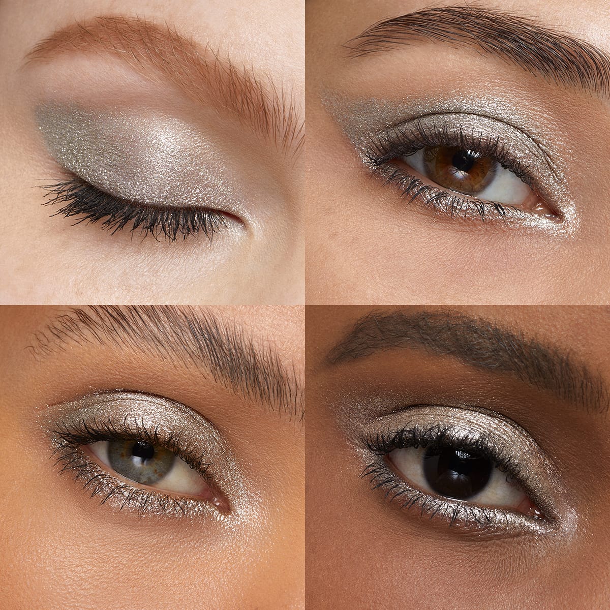 Высокопигментированные долгосрочные мерцающие тени для век для мгновенного и трехмерного блеска. Только для сухого использования.