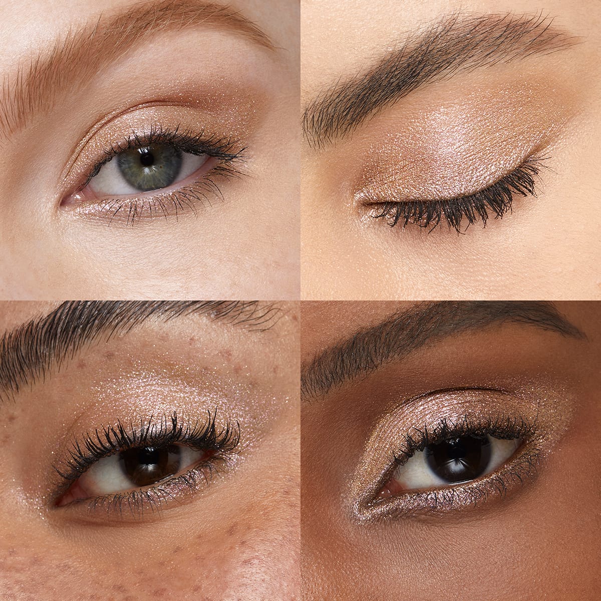 Высокопигментированные долгосрочные мерцающие тени для век для мгновенного и трехмерного блеска. Только для сухого использования.
