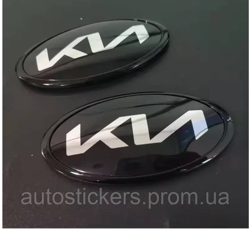 эмблема KIA купить • логотип Kia на капот • значок Kia черный хром • шильдик Kia • значок Киа пластик • эмблема Киа 130х65 мм • Kia badge black chrome