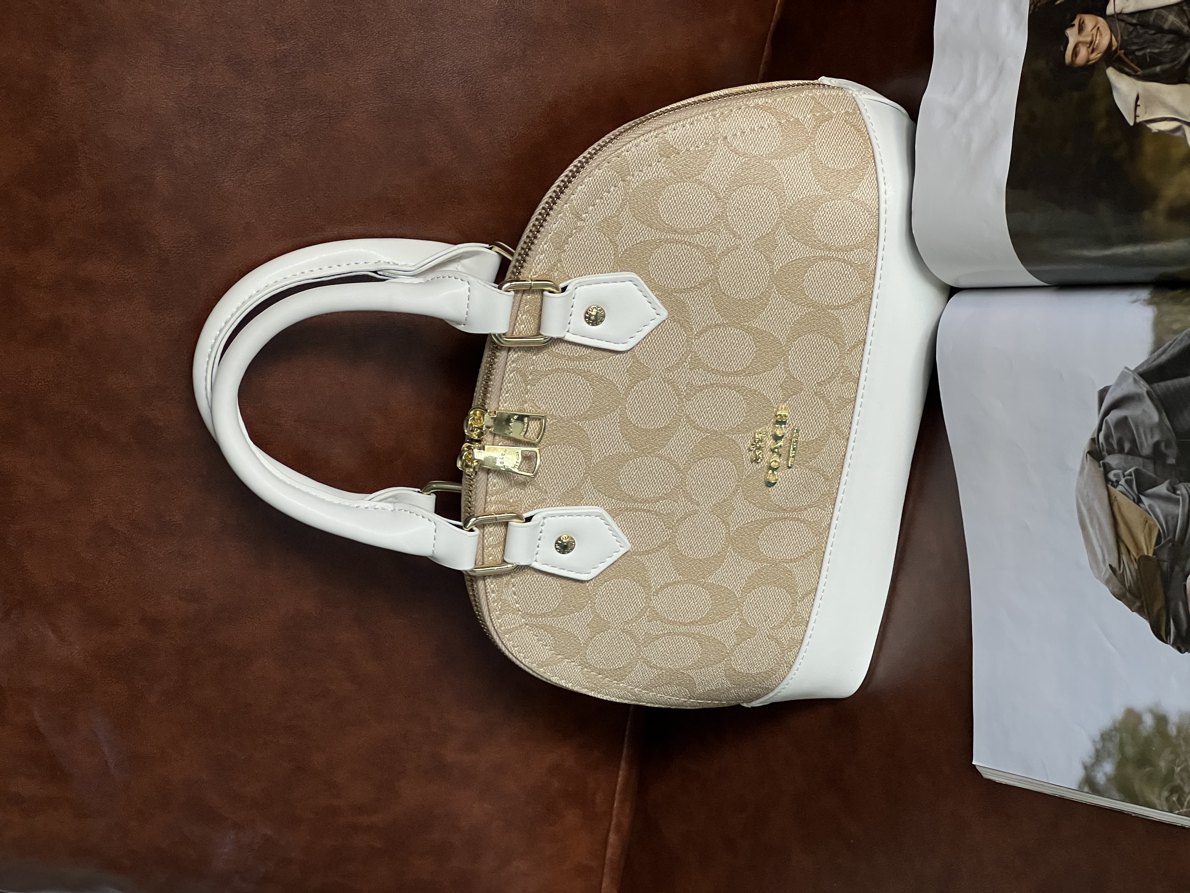 | Женская сумка коуч брендовая бежево-белая классическая экокожа Coach |