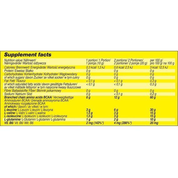 Кроме того, для увеличения эффективности BCAA XPLODE производитель добавил L-глютамин и витамин В6. L-глютамин предотвращает разрушение мышц и участвует в процессе синтеза протеина, препятствует перетренированности и укрепляет иммунитет спортсмена. При участии витамин B6 происходит рост мышц, так как он оказывает влияние на утилизацию углеводов и синтез белка. Кроме того, он способствует выработке инсулина, а также различных медиаторов и ферментов в организме. Исследования показывают, что при занятиях бодибилдингом организм нуждается в больших дозах витамина B6, так как он существенно повышает производительность и выносливость, играет центральную роль в метаболизме жиров.