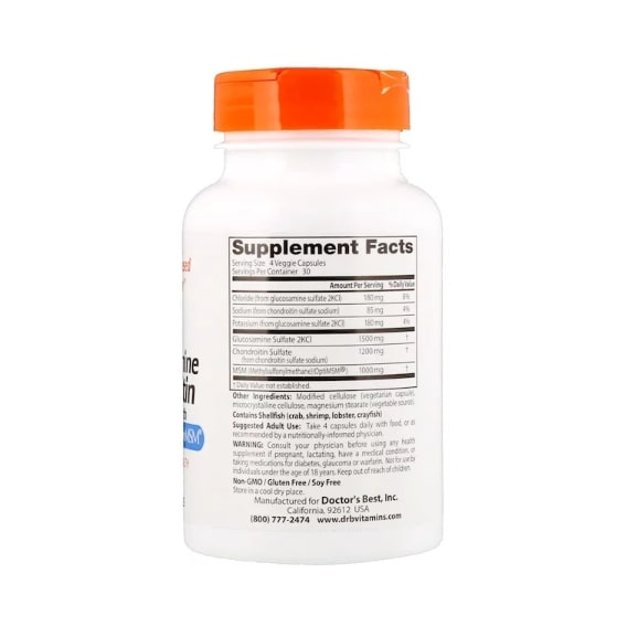 Препарат «Глюкозамин, хондроитин и МСМ» от Doctor's Best предоставляет 3 важных питательные вещества, которые способствуют сохранению здоровья суставов и соединительных тканей: глюкозамин, хондроитин и метилсульфонилметан (МСМ, из OptiMSM). Сульфат глюкозамина обеспечивает здоровье суставов, предоставляя им смазку, а также улучшая их подвижность и гибкость. Хрящи, сформированные из протеогликанов, в основном находятся в костях (рядом с суставами) и состоят преимущественно из протеина коллагена с боковыми связями, известными как хондроитин сульфаты. МСМ поставляет организму биодоступную серу, необходимую для здоровья суставов, волос, кожи и ногтей. OptiMSM очищается путем дистилляции для достижения высочайшей чистоты и консистенции, и является отличным источником биодоступной серы.