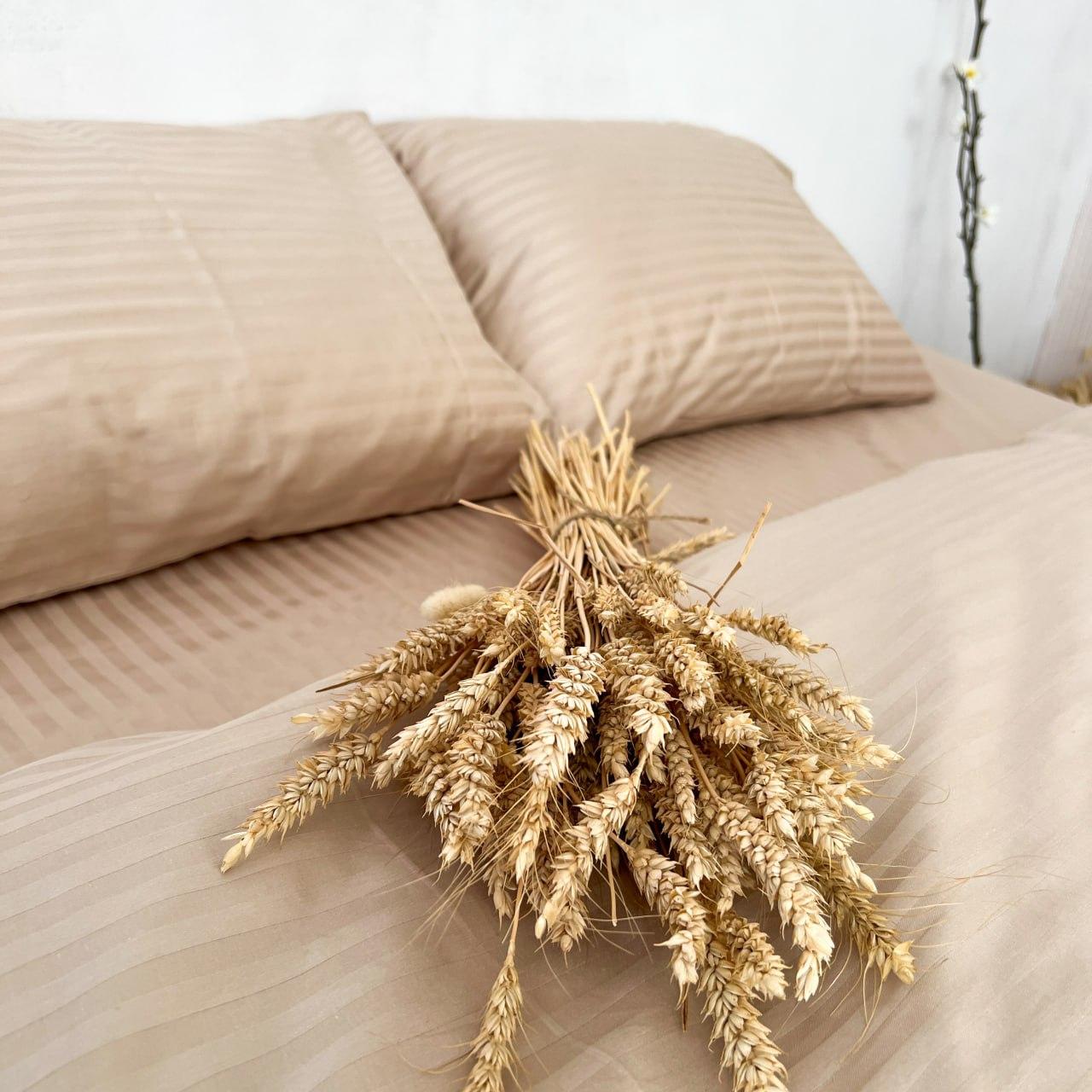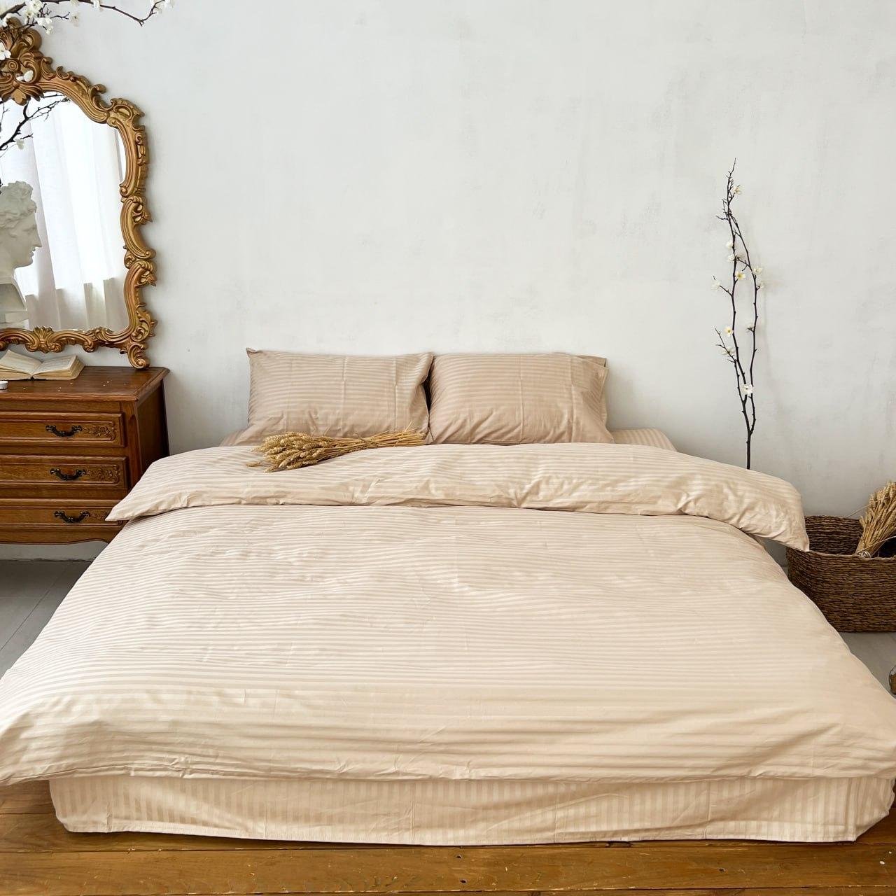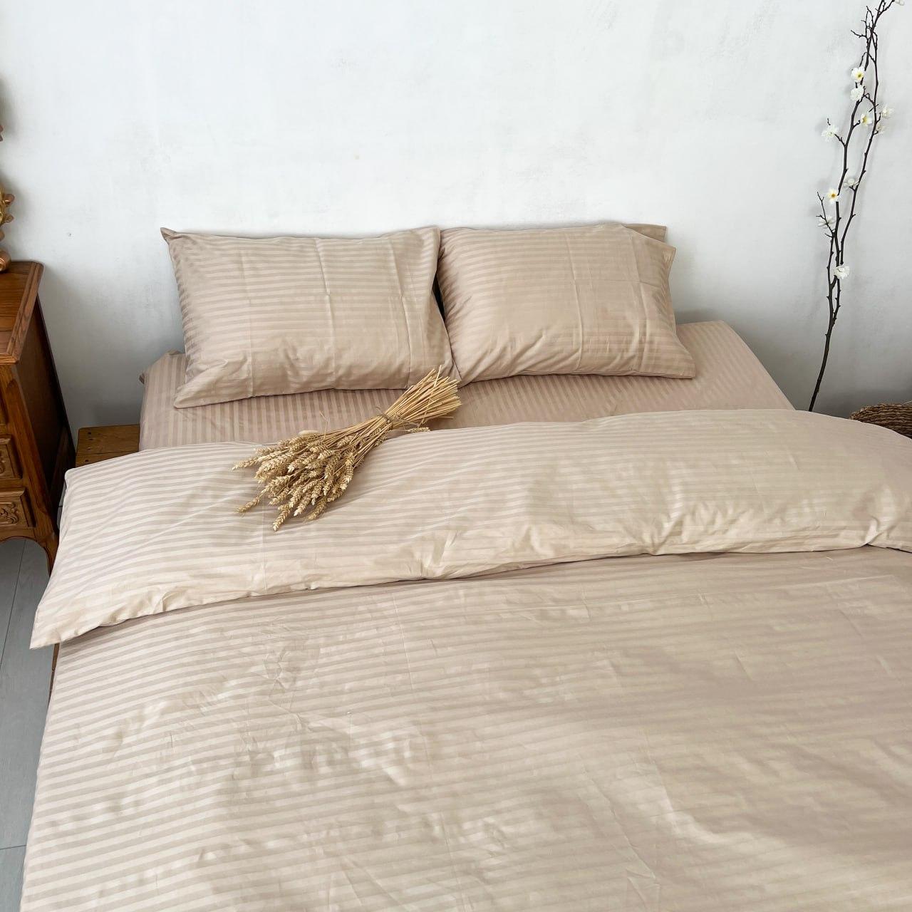 Постельное белье однотонное бежевое комплект Бежевая страйп