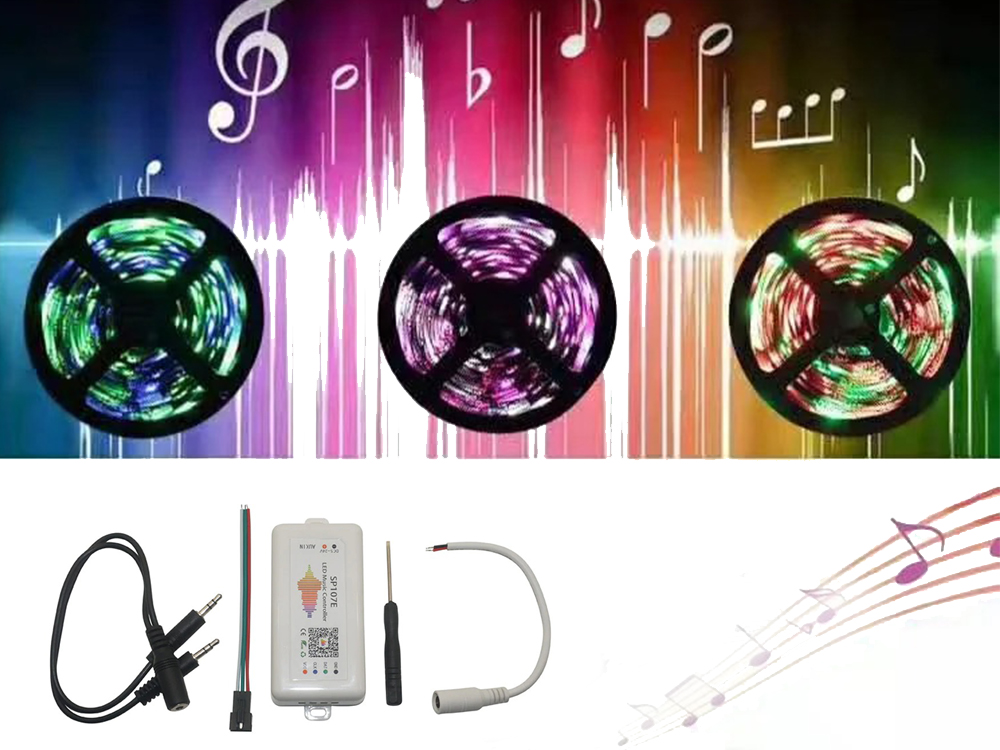 Музыкальный Bluetooth контролер SP107E для адресной диодной ленты WS2811 WS2812 - это контроллер со встроенным микрофоном, входом AUX и возможностью управления с мобильного телефона или планшета по Bluetooth.