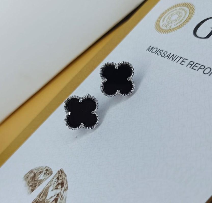 | Сережки ван клиф брендовые клевер листик английский замок черный оникс в белом золоте Шарики Van Cleef |