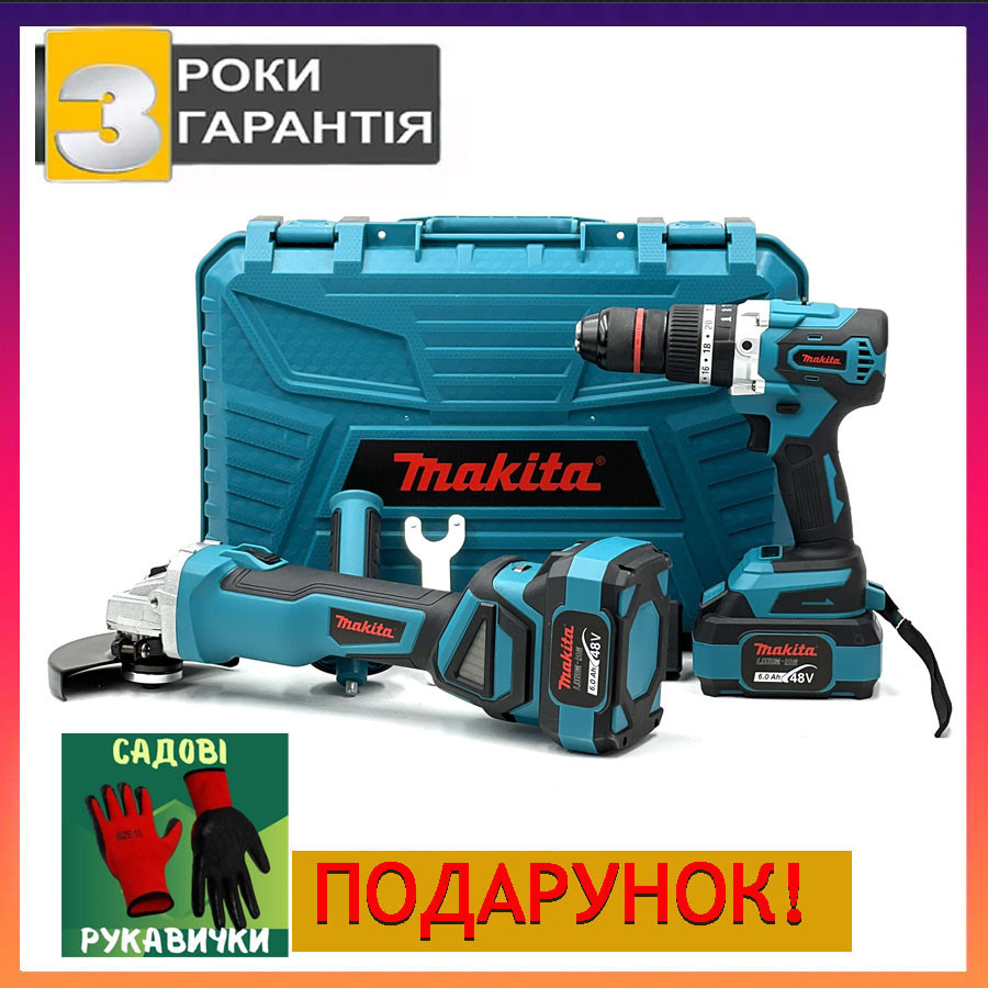 Набор Makita 2в1 Бесщеточные 48V 6.0AШуруповерт Ударный DTW488 патрон 13мм Болгарка Makita DGA506ZPRO