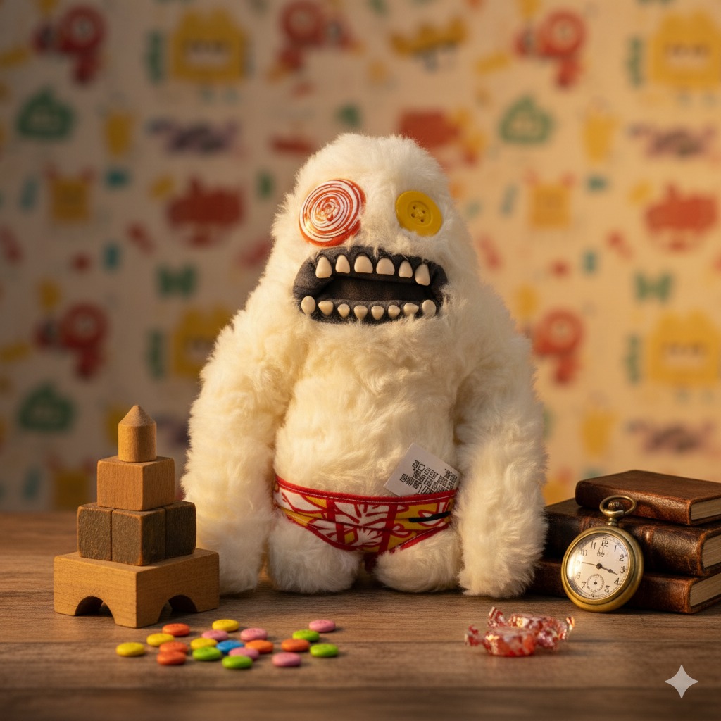 Игрушка монстр Фуглер Fuggler Fart Face Sasquoo с зубами плюшевый в трусах на присоске 22 см Белый