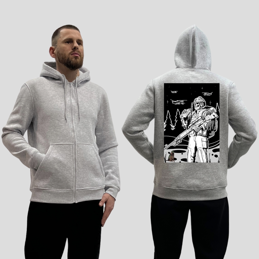 Мужской зип-худы на флисе с принтом Скелет и собака дроны — это не просто одежда, а стильный аксессуар, который подчеркнет вашу индивидуальность. Благодаря использованию трехнитки на флисе, вы почувствуете комфорт и тепло даже в самые холодные дни. Принт с оригинальным дизайном привлекает внимание и добавляет нотку креативности к вашему образу.