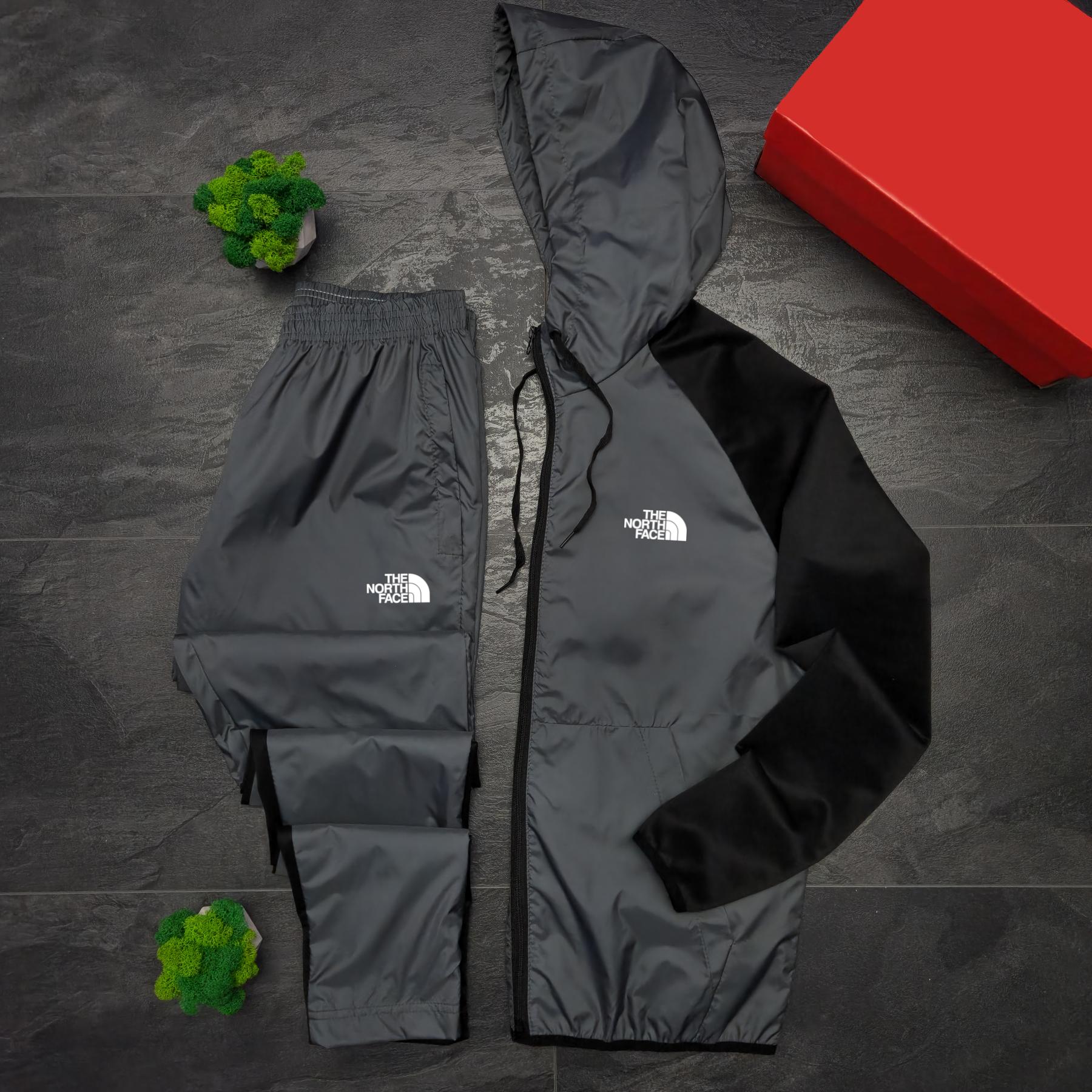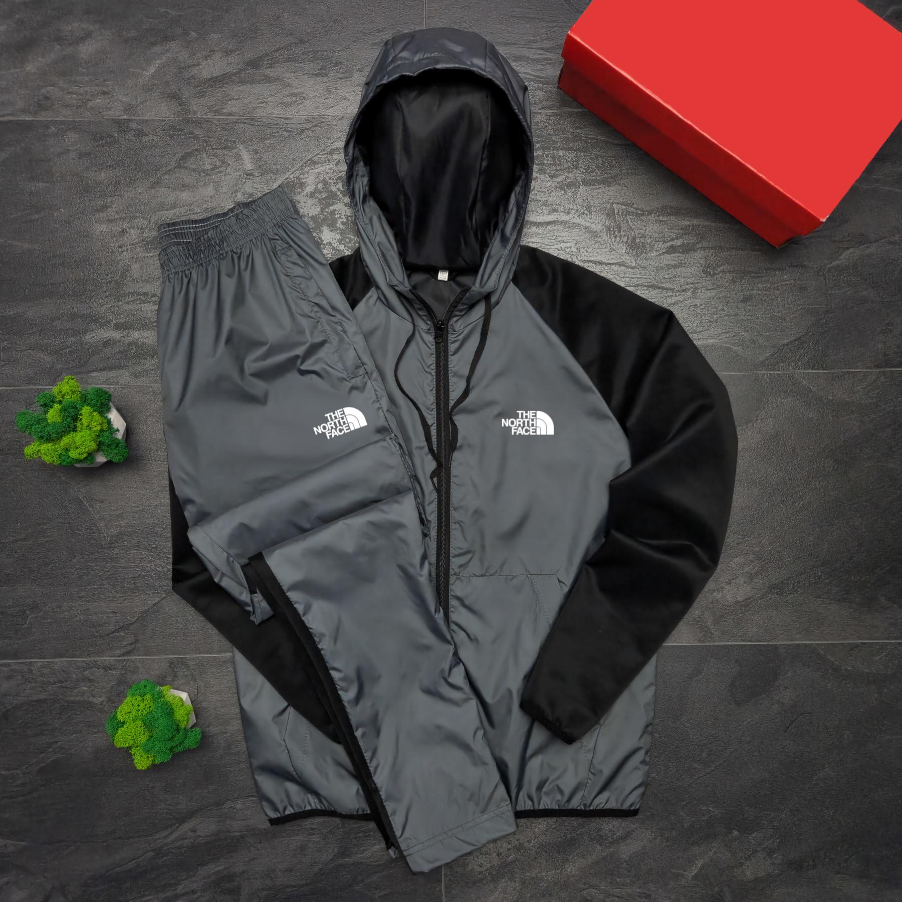 Костюм THE NORTH FACE Плащевка/Дайвинг – это идеальное решение для осеннего, весеннего и летнего сезона. Он изготовлен из матовой плащевки серого цвета, что придает ему современный вид, а вставки из дайвинга на рукавах и брюках обеспечивают дополнительную эластичность и комфорт.