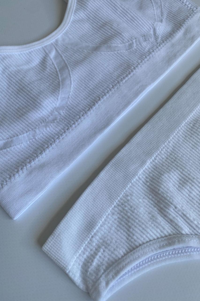 Этот комплект станет вашим незаменимым помощником в любой ситуации – от тренировок в спортзале до важных событий. Легкая ткань, напоминающая вторую кожу, позволяет коже дышать, а белый цвет придает свежесть и элегантность вашему образу.