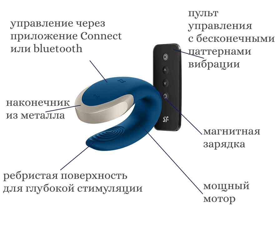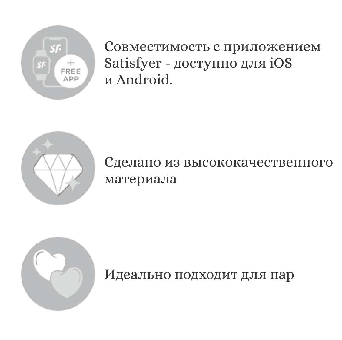 Управление максимально просто выполняется из приложения, где мир фантазии не ограничивается ничем! Экспериментируйте, а рельефная поверхность Satisfyer Double Love будет дополнительно ублажать вас.