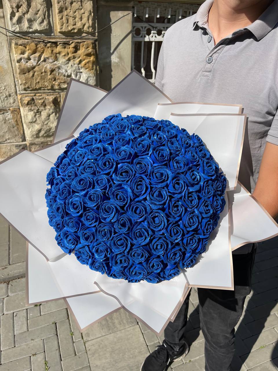 Женский букет из 101 синей мыльной розы длиной 40 см DBUY Жіночий букет з 101 синьої мильної троянди 40 см довжиною