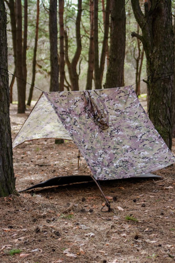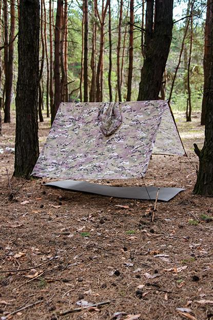 Низ изделия оснащен люверсами, что позволяет зафиксировать палатку с помощью колышков или деревьев. В комплекте вы получите набор веревок, которые значительно упростят процесс установки. Вес плащ-палатки всего 0,82 кг (с чехлом и веревками), что делает его невероятно легким для транспортировки.