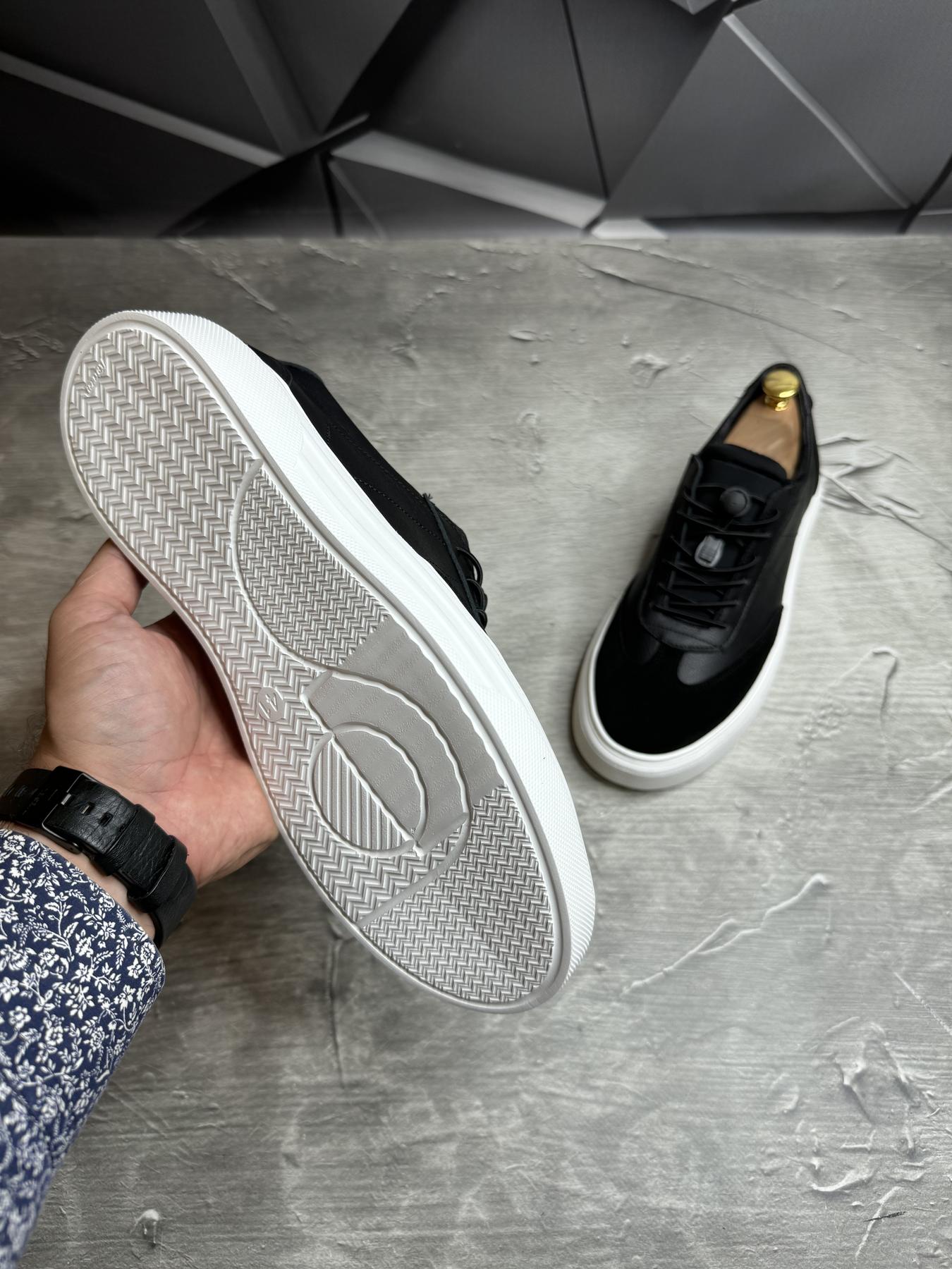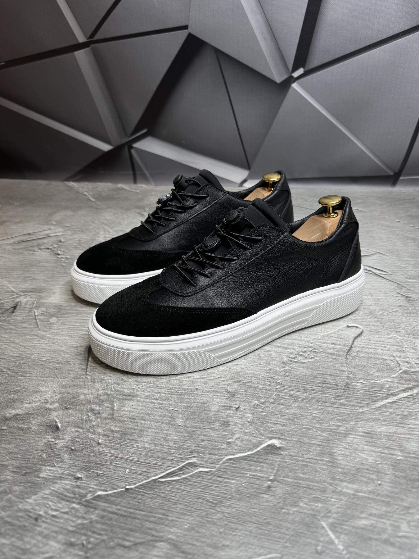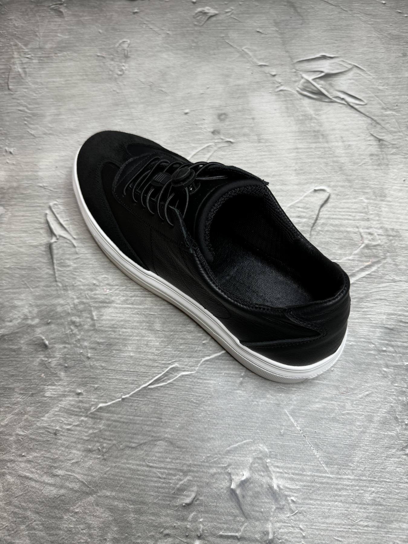Мужские кеды черные из мягкой натуральной кожи и черные замши.
