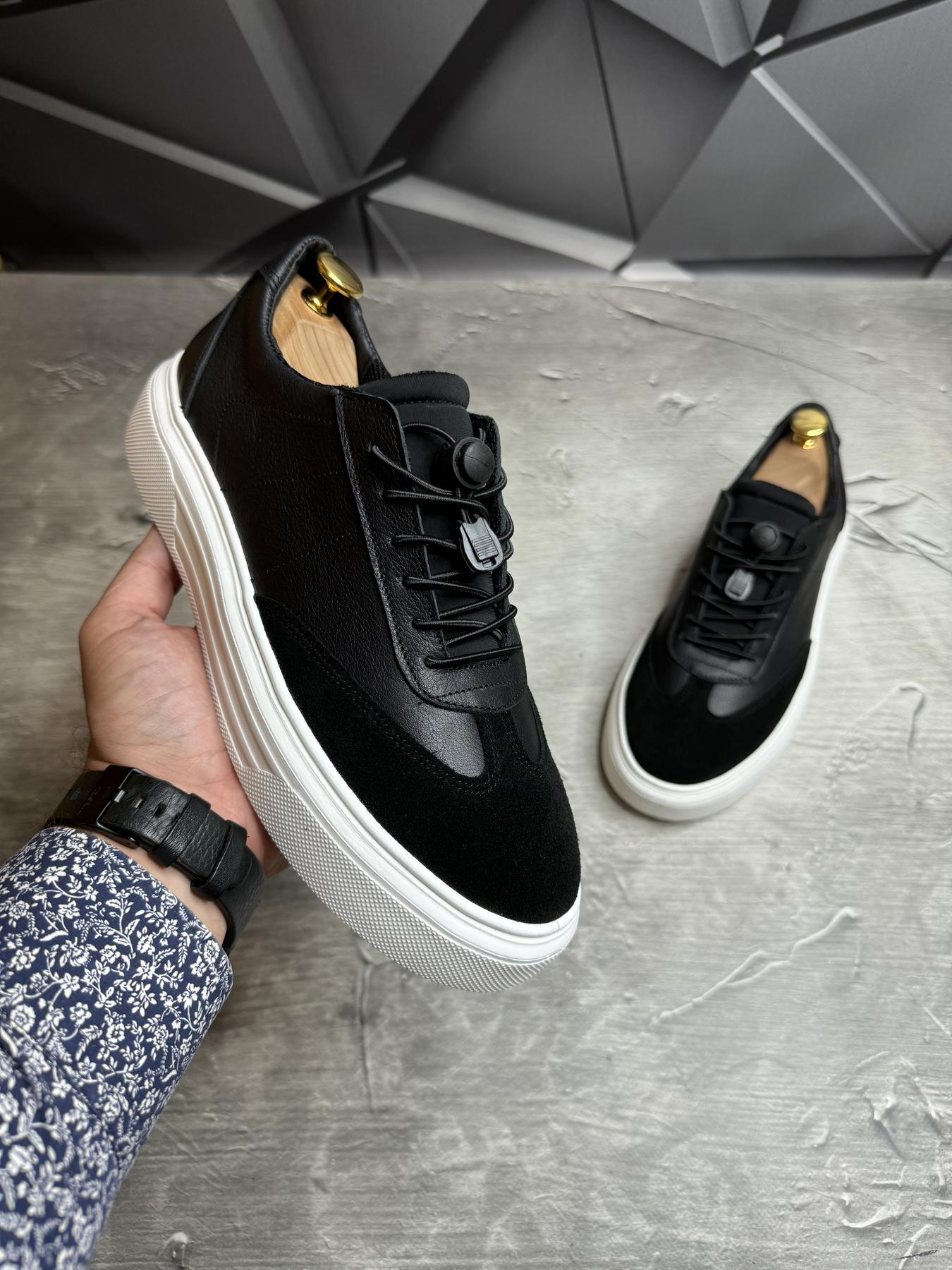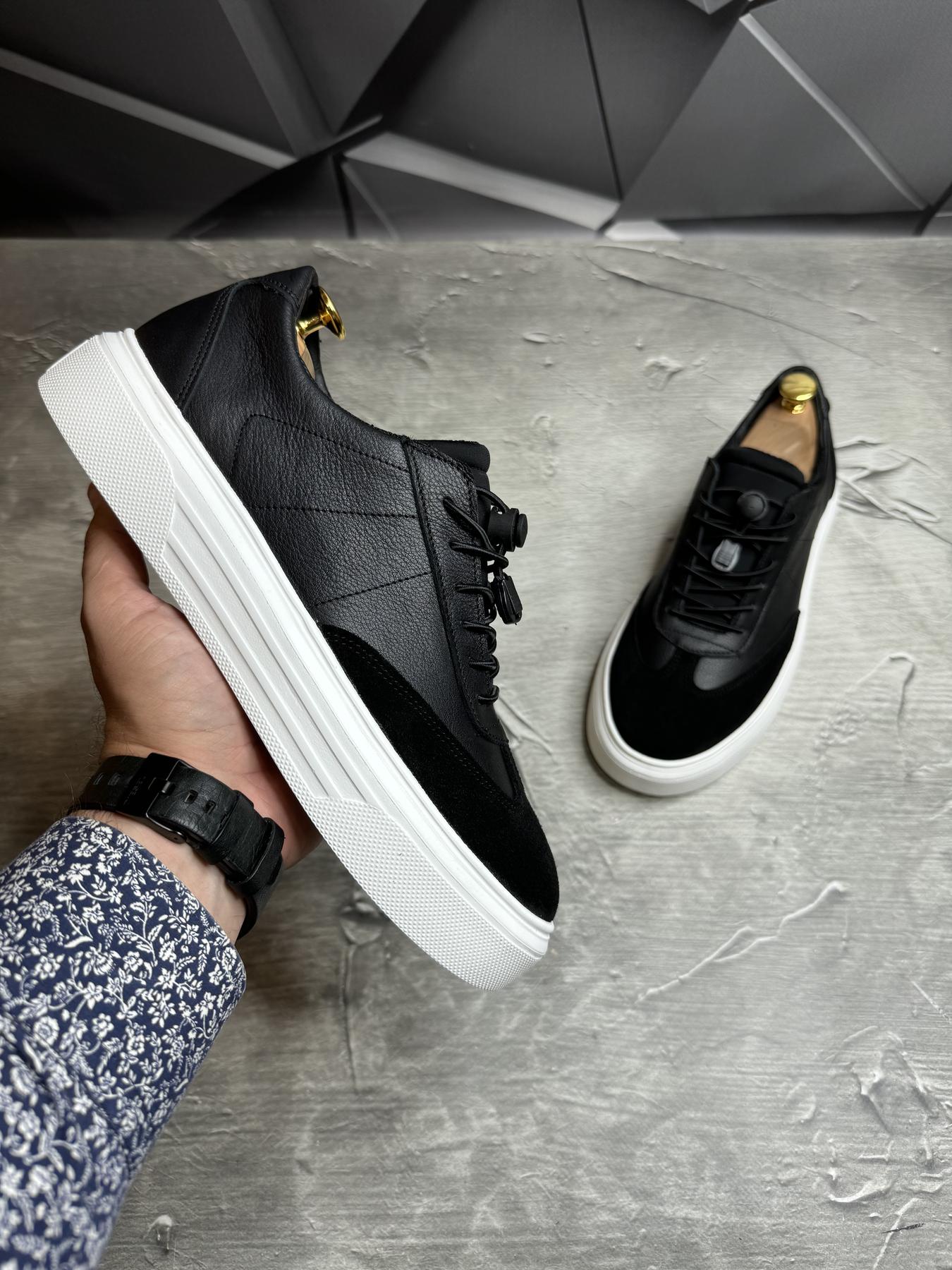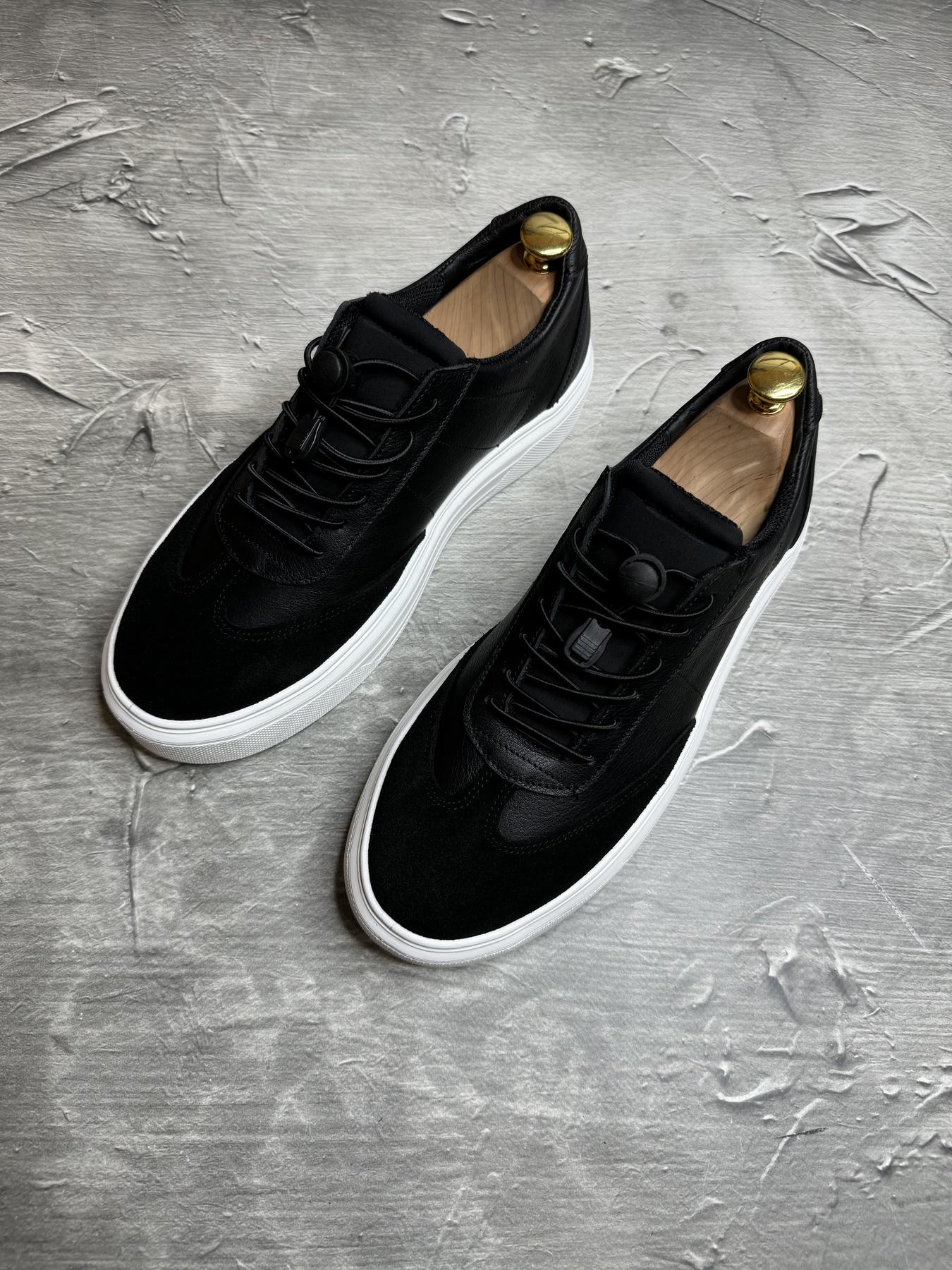 Мужские кеды черные из мягкой натуральной кожи и черные замши.