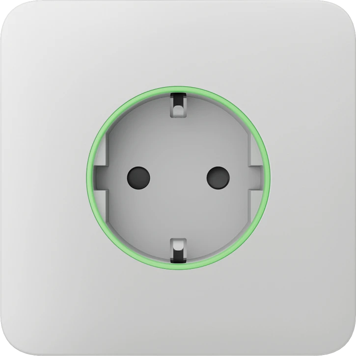Передняя панель Ajax SoloCover White — это не просто элемент управления, это важная часть вашего интерьера. С появлением встроенной умной розетки Outlet [type F] Jeweller, пользователи получили возможность управлять электроприборами с помощью сценариев автоматизации. Вы можете автоматически включать или выключать розетки по расписанию, а также в случае тревоги, например, при обнаружении дыма.
