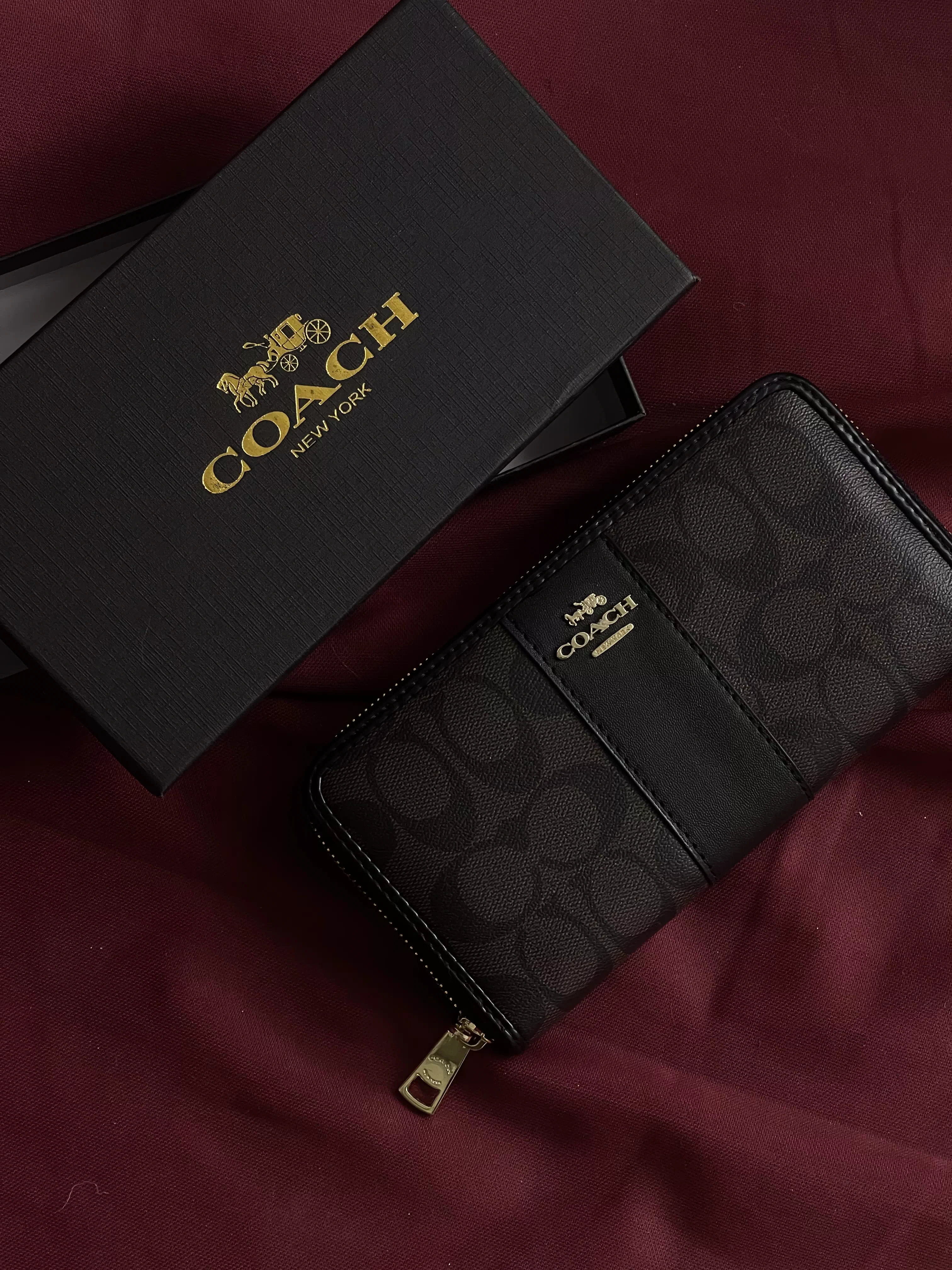 | Кошелек коуч брендовый большой с логотипом темно коричневый Эко-кожа Coach |