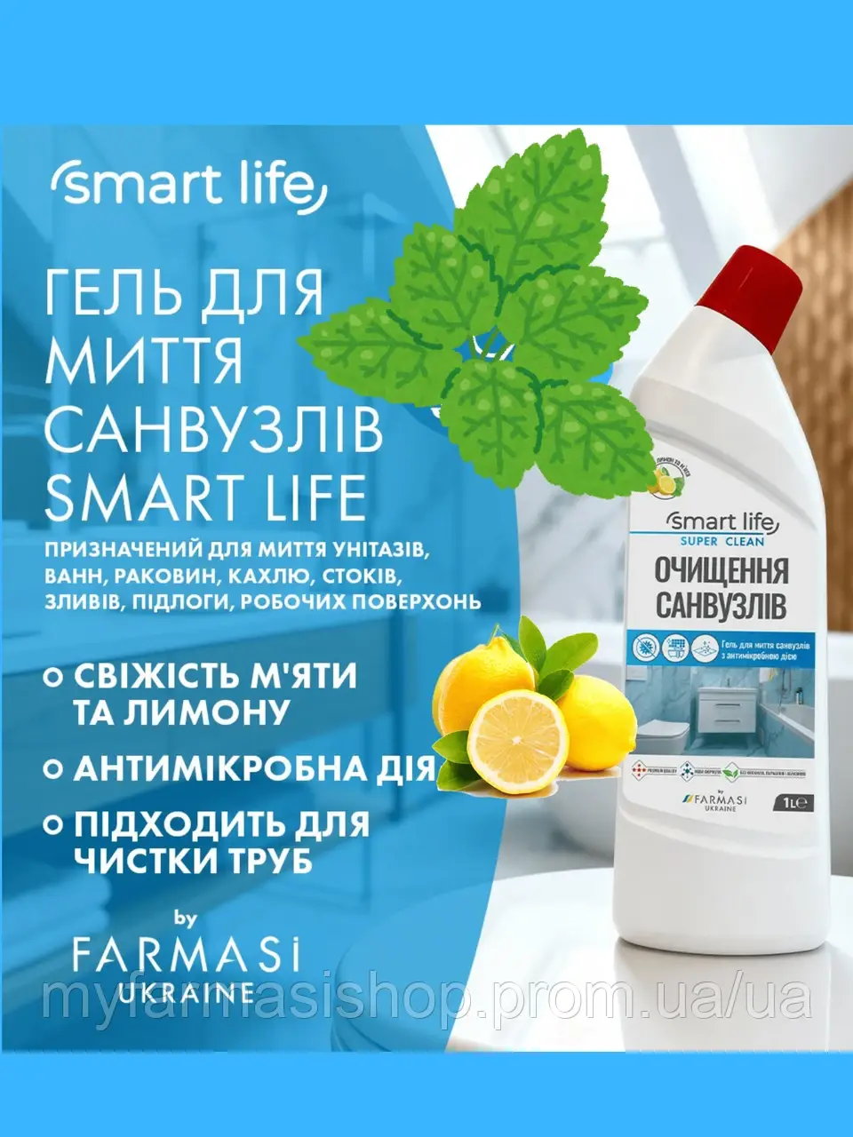 Знакомься: гель для мытья санузлов Smart Life «Лимон и Мята» — твой личный киллер микробов, который оставляет после себя только свежесть.