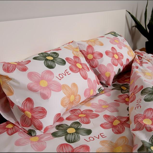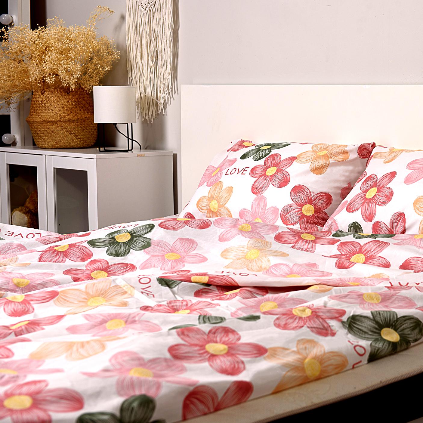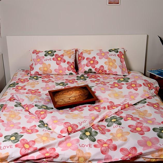 Постельное белье розово молочное наволочки простынь пододеяльник комплект Цветы