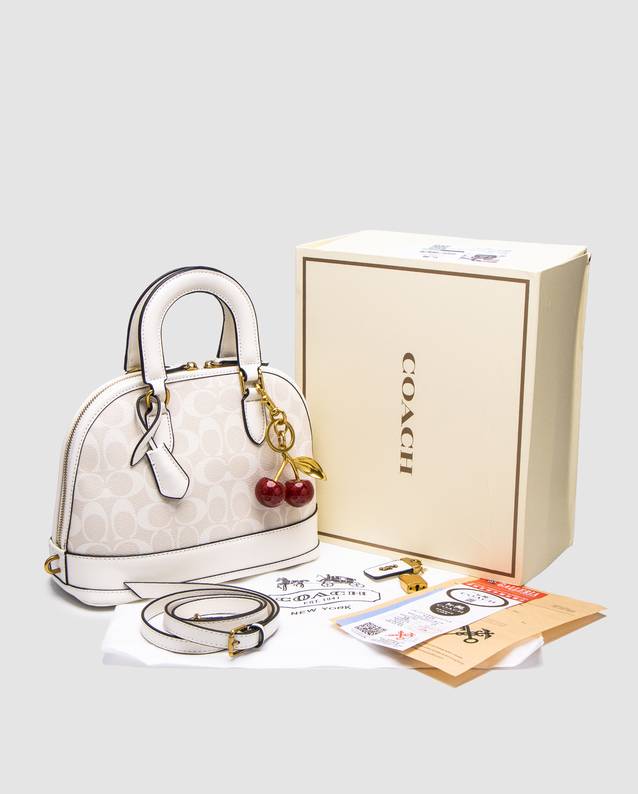 | Женская сумка коуч брендовая белая классическая кожаная с логотипом COACH |