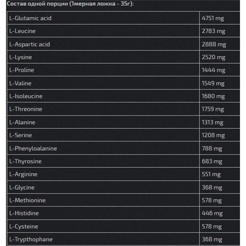 В сывороточном протеиновом комплексе основу составляет разветвленная цепь аминокислот ВСАА и глютамина. Это все обеспечивает ярко выраженный анаболический эффект в организме. Результатом такого моментального эффекта является быстрая усвояемость организмом аминокислот и переноса их током крови в мышцы. Тем самым, спортсмен может восполнить белковое окно, принимая сывороточный протеиновый комплекс утром и перед сном.