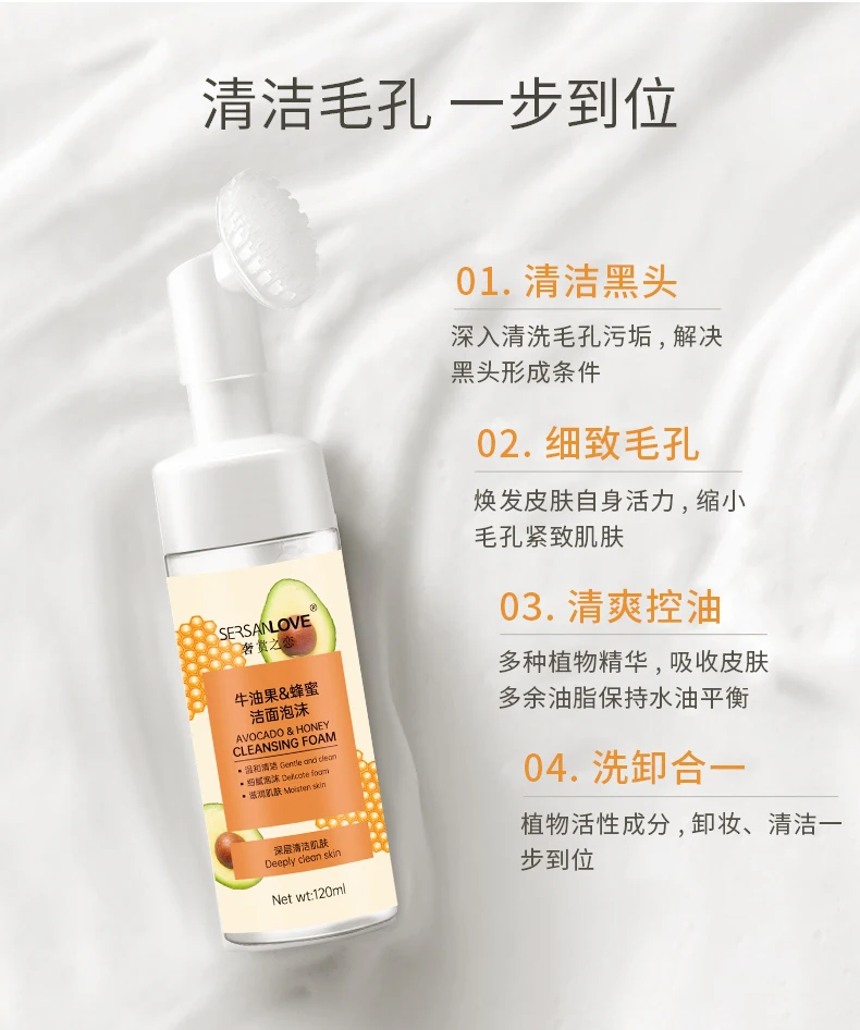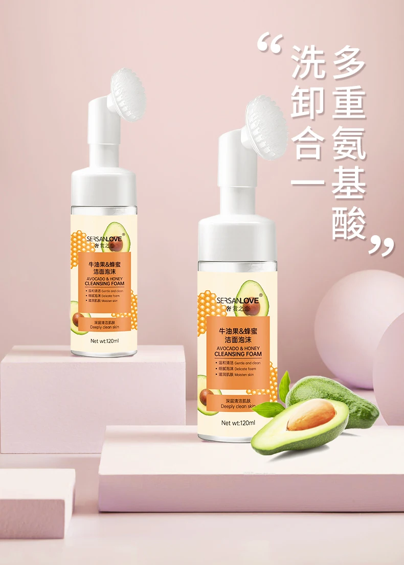 Пенка-мусс с щеточкой для умывания с авокадо и медом Sersanlove Avocado Honey Cleansing Foam удаляет макияж, очищает поры, осветляет дерму и не вызывает чувство стянутости и сухости. Пенка имеет удобную насадку с силиконовой щеточкой, которая оказывает массажный эффект и удаляет отмершие частички эпидермального слоя, делая кожу нежной и гладкой.