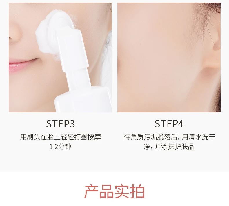 Умойтесь чистой водой и понемногу надавливая на кнопку насадки, массажными движениями пройдитесь по лицу 1-2мин. Смойте средство чистой проточной водой. Рекомендуется применять утром и вечером.