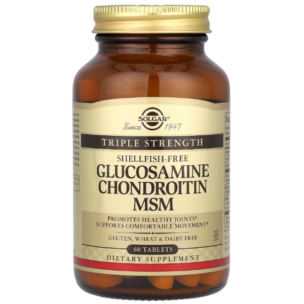 Solgar Triple Strength Glucosamine Chondroitin MSM - это диетическая добавка, объединяющая три основных ингредиента для поддержания здоровья суставов: глюкозамин, хондроитин и метилсульфонилметан (MSM).