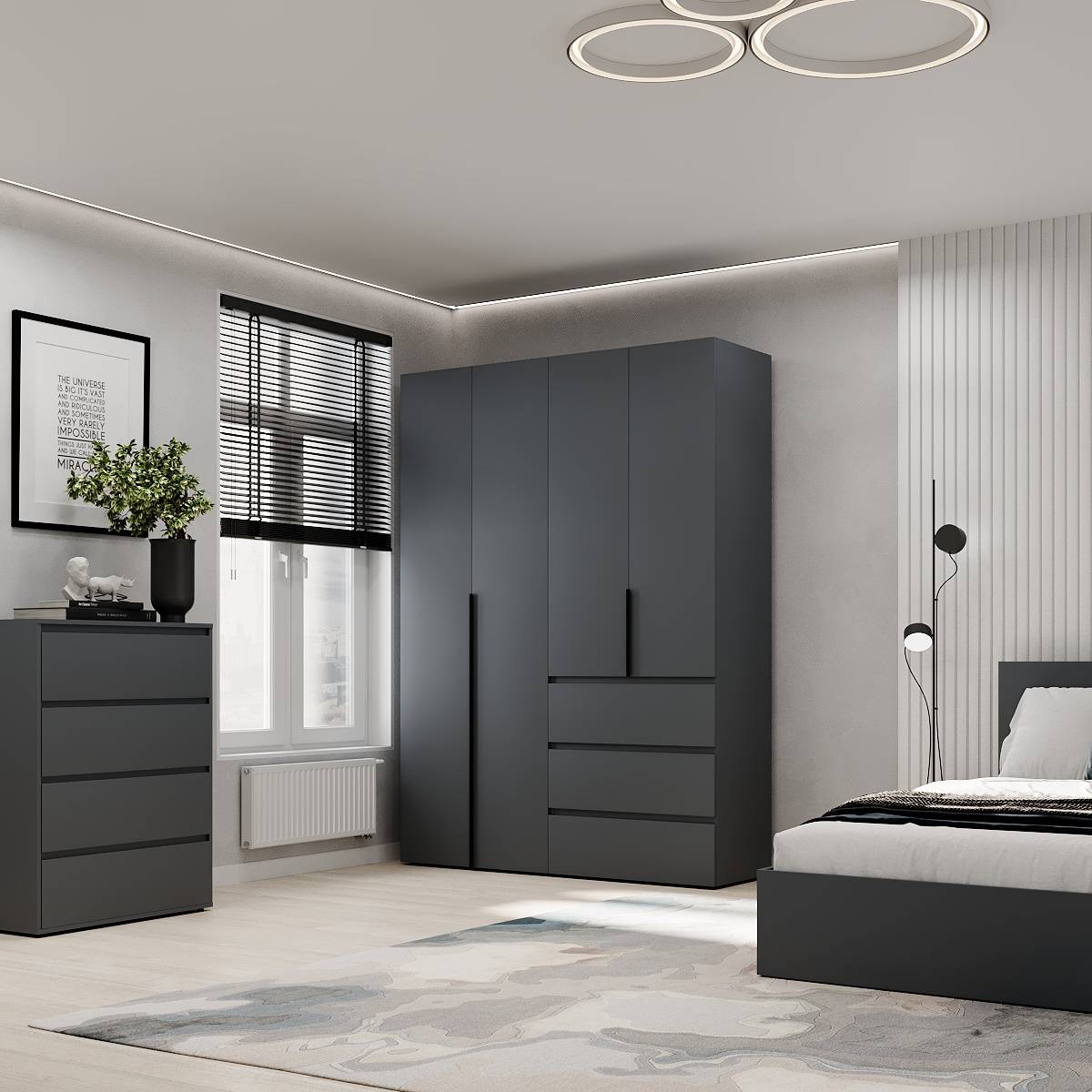 Модель ідеально підійде для спальні, передпокою чи гардеробної кімнати, де важливо підтримувати порядок і зберігати речі компактно Завдяки прямій формі шафа легко впишеться навіть у невеликі приміщення. Поверхні легко очищуються, не втрачаючи привабливого вигляду з часом.