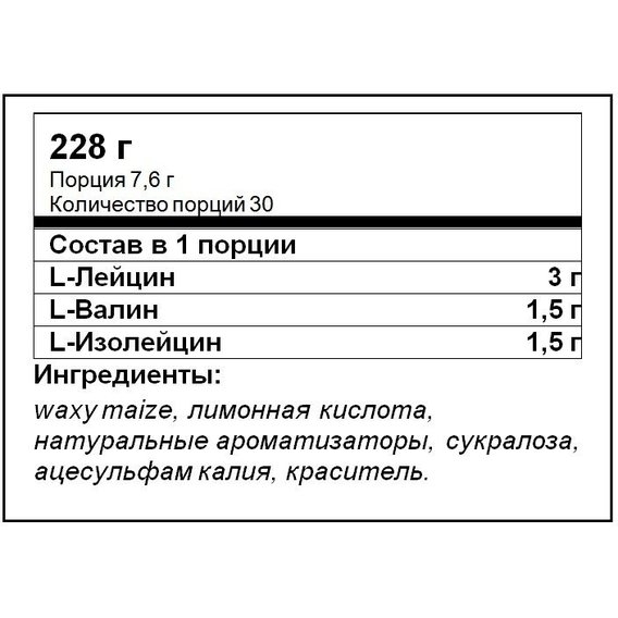 Человеческий организм не способен самостоятельно синтезировать входящие в состав добавки аминокислоты лейцин, изолейцин и валин. Поэтому человек должен сам позаботиться об их поступлении с продуктами питания или в виде специально разработанного комплекса БЦАА Паудер 12000 от Ультимат Нутришн. Одна порция продукта содержит 6 г таких незаменимых аминокислот, которые поступают в организм именно тогда, когда он особо остро в них нуждается.