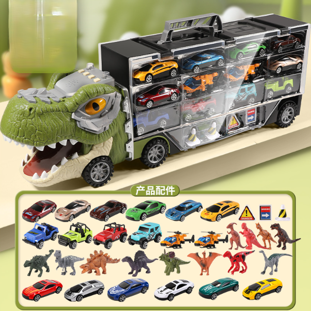 Большой автовоз "Автовоз динозавр" станет настоящей находкой для юных любителей приключений в мире динозавров и машинок. Этот уникальный грузовик выполнен в виде головы тираннозавра, что придаёт ему оригинальность и привлекательность.