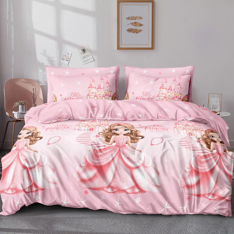 Постільна білизна з принцесами — це стильний тематичний комплект, який поєднує сучасний дизайн та високу якість натуральної тканини. Принт виконаний у стриманій, збалансованій кольоровій гамі, завдяки чому комплект виглядає гармонійно та може стати акцентом інтер’єру без надмірної яскравості. Бязь люкс забезпечує приємні тактильні відчуття, добре пропускає повітря, зберігає форму й стійкість кольорів після численних прань. Такий варіант підійде тим, хто цінує практичність, комфорт і тематичний дизайн у більш виваженому виконанні. У нашому каталозі ви можете купити постіль з принцесами у різних розмірах та комплектаціях, включно з варіантом простирадла на резинці.