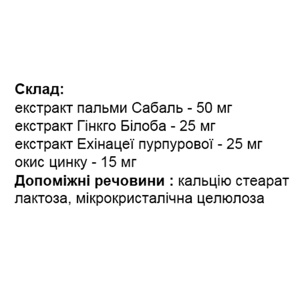 Плоды пальмы сабаль содержат вещества, препятствующие образованию дигидротестостерона из тестостерона, таким образом способствуют нормализации структурного и функционального состояния предстательной железы.