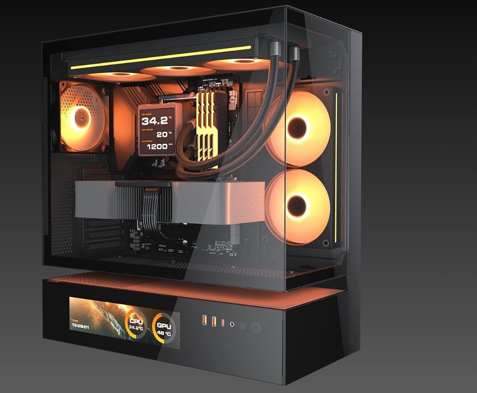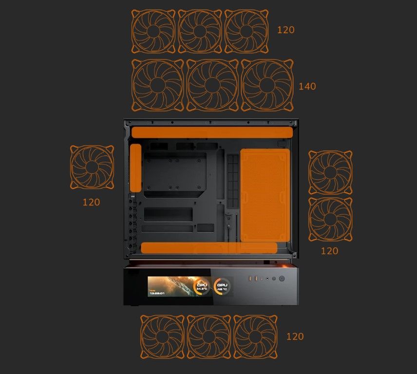 CFV235 Vision — це новий тип корпусу для ПК з інноваційною конструкцією центральної плаваючої вентиляції (CFV). Вона розділяє відсік блоку живлення та основний відсік, дозволяючи використовувати вільний простір між ними для охолодження та додаткової вентиляції. Вбудований 9.16-дюймовий IPS TFT LCD-дисплей забезпечує програмний моніторинг системи в режимі реального часу з роздільною здатністю 1920х462 і частотою оновлення 60 Гц, відображаючи критично важливі дані і настроювані візуальні ефекти. Оптимальне поєднання повного панорамного огляду, компактних розмірів, архітектурно вдосконаленої системи охолодження і технології відображення з ефектом присутності — CFV235 Vision дозволяє візуалізувати повітряний потік за межами звичайних обсягів.
