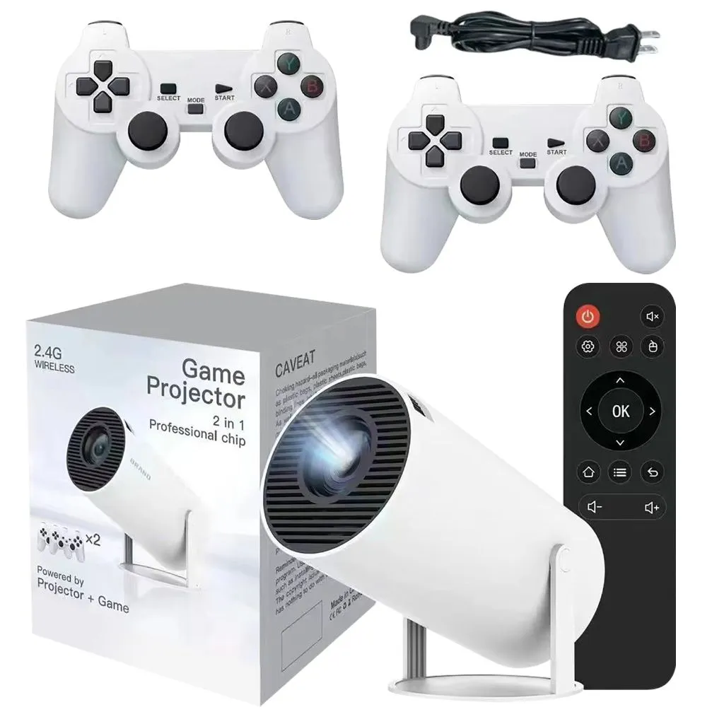 Игровой проектор обеспечивает привлекательные визуальные эффекты в формате 4K UHD (3840x2160) со встроенными ретро- и казуальными играми и двумя беспроводными контроллерами для иммерсивного домашнего кинотеатра или развлечений на открытом воздухе.