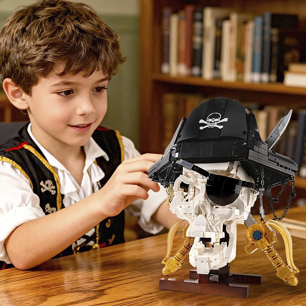Конструктор KQIBOXXR Pirate Skull (KQ301) — это увлекательный набор из 1167 деталей, который позволит вам воссоздать мистический и одновременно величественный образ пиратского черепа. Эта модель не просто собирается — она оживает в ваших руках, превращаясь в символ морского приключения и свободы. Готовая фигура изображает реалистичный череп, увенчанный классической черной пиратской треуголкой с характерно загнутыми полями. На передней части шляпы четко белый логотип в виде черепа со скрещенными костями (наклейка, которая клеится сомостоятельно) — известный символ пиратства, придающий модели аутентичность и детализацию. Общая композиция напоминает находку среди обломков затонувшего корабля, когда из песка и времени проявляется этот безмолвный свидетель прошлых битв и сокровищ.
